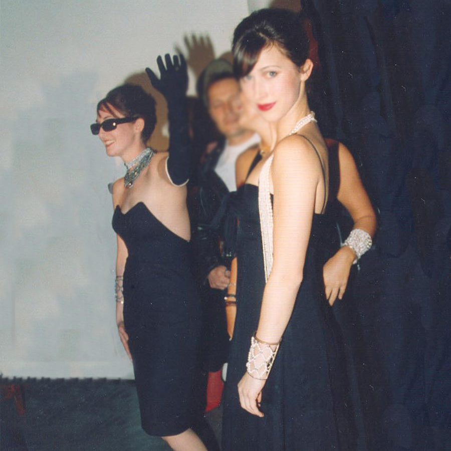 Pictured at the Harley-Davidson 100th anniversary wearing our white freshwater pearl white Freshwater pearl lariat and our monochrome freshwater pearl lace cuff. Sophie Hunter has since had a very successful career as a theatre and Opera director and is currently Mrs Benedict Cumberbatch