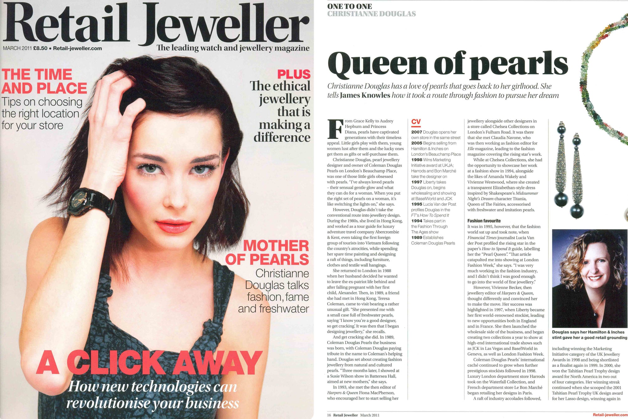 Knowles, is a 2 page spread on our designer and pearl specialist, Chrissie Douglas.