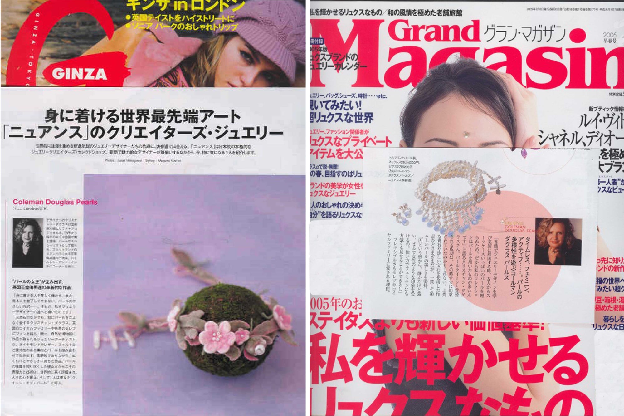 Blue Agate White Freshwater Pearl 'Atlantis' Choker, Blue agate earrings alongside the limited edition felt and pearl collection are featured in this edition of Ginza and Grand Magazin in Japan.