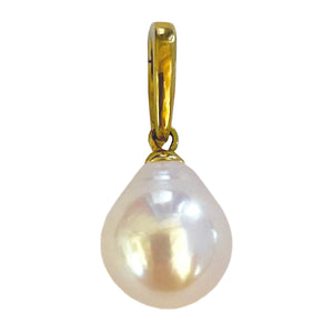 'Build your own' by adding this large single creamy white Freshwater pearl suspended from a yellow gold plated charm onto a pearl necklace or chain ...let your imagination run wild! The versatility of this simple design knows no bounds (typifying Chrissie’s mix and match philosophy). Each pearl is hand-selected for its soft, even shape and silky lustre - complimenting all skin tones. Couple with matching White Freshwater Pearl Gold Mini Drop Earrings.
