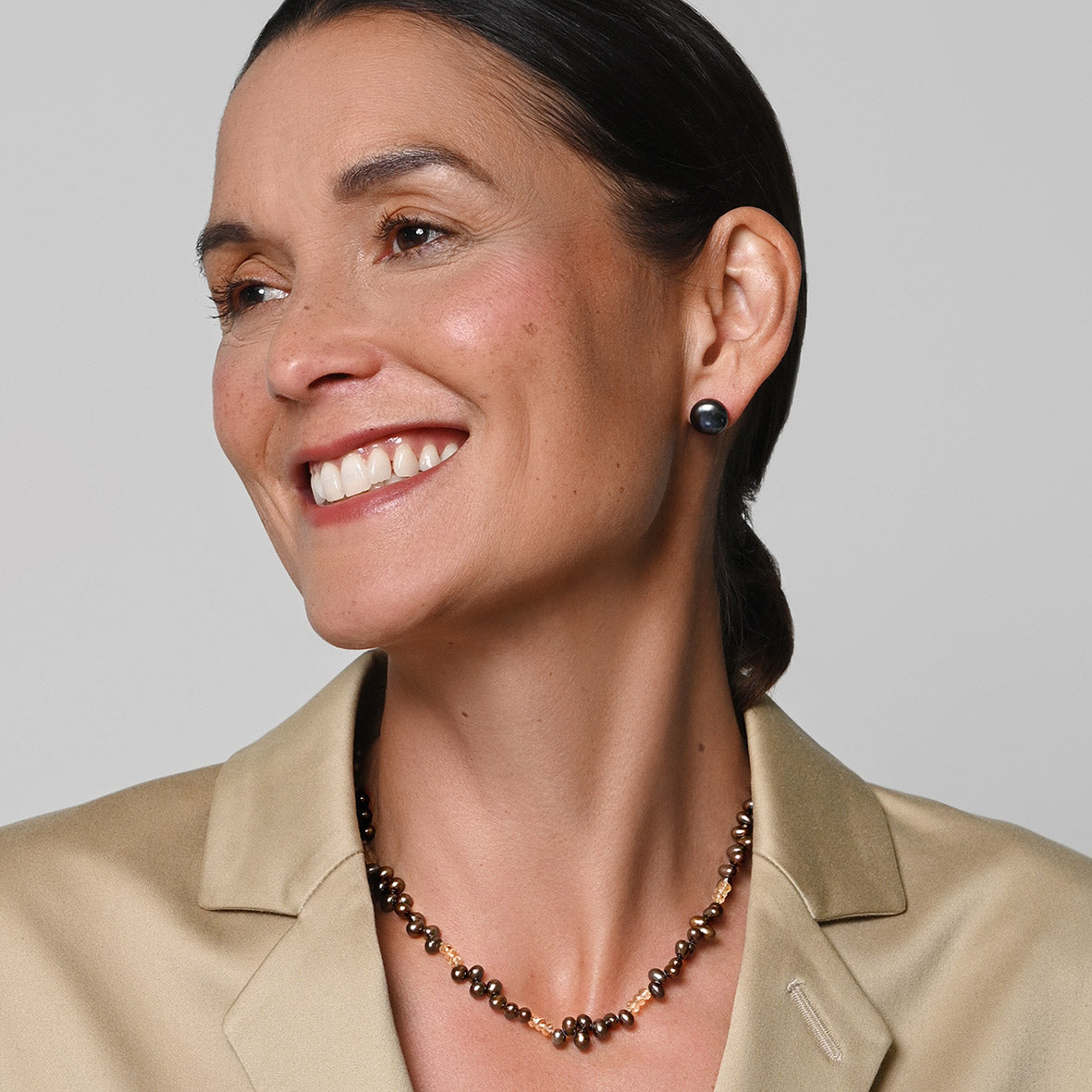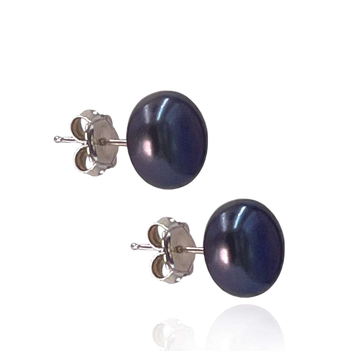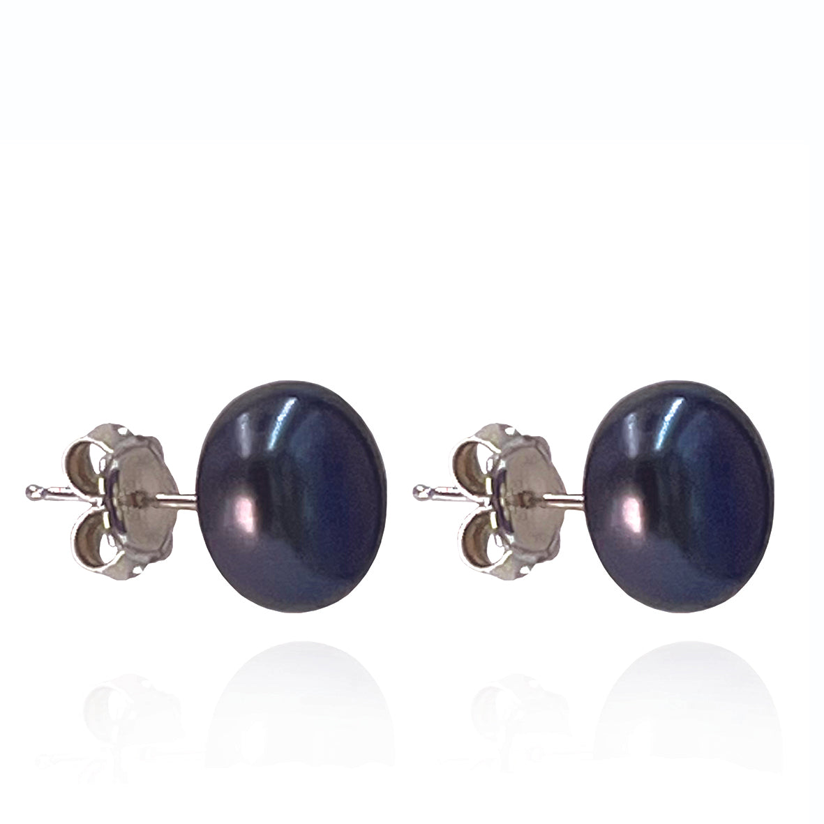 Large stud earrings crafted in sterling silver and hand-set with stormy black Freshwater pearls. Each pearl has been hand-selected for its even shape and warm, creamy lustre; beautifully reflecting the light to enhance your natural beauty. Complete this classic look by pairing these studs with a matching leather and pearl choker to complete the set.
