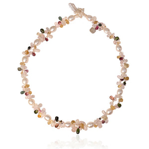 Inspired by the colourful 'Tutti Frutti' original sweets, cascading spirals of Tourmalines, Rose Quartz, Citrines, Rainbow Moonstone & creamy white Freshwater pearls create a fluid and eye-catching movement. Complete the look with the matching pair of 'Tutti Frutti' earrings.