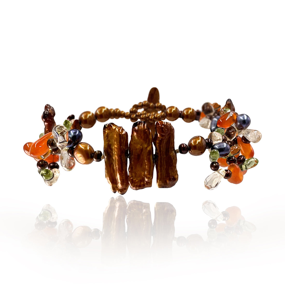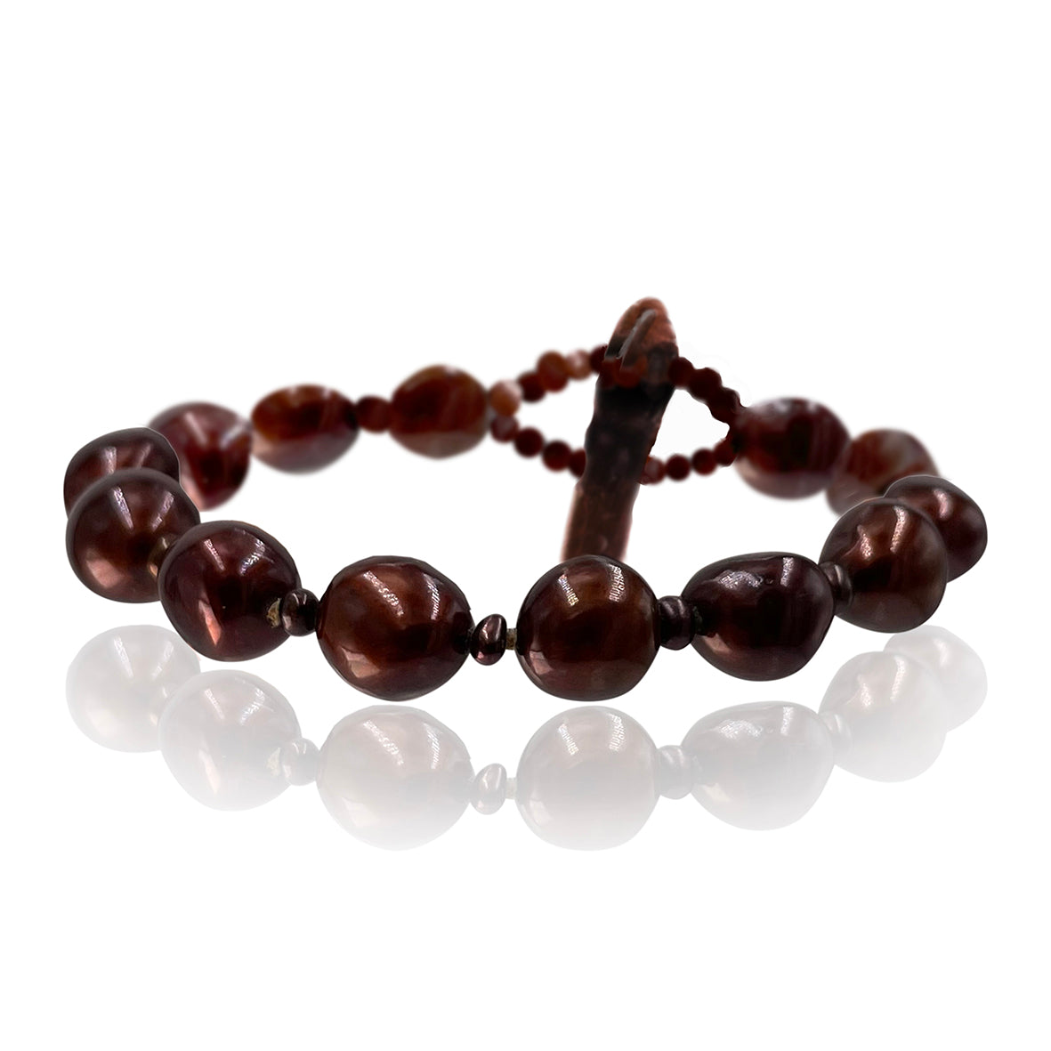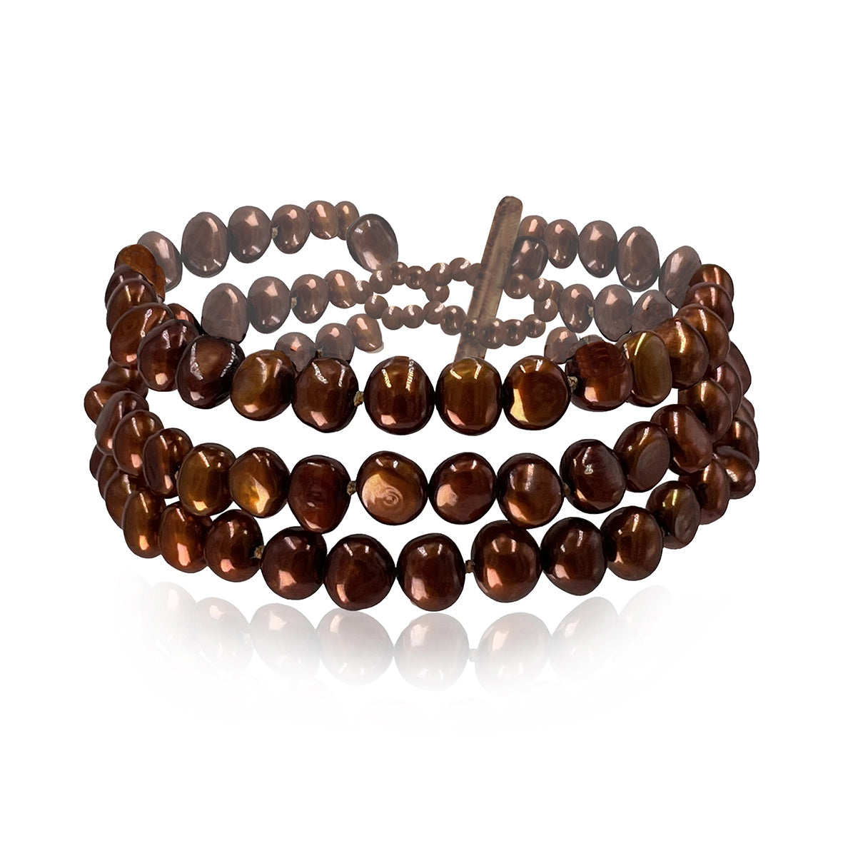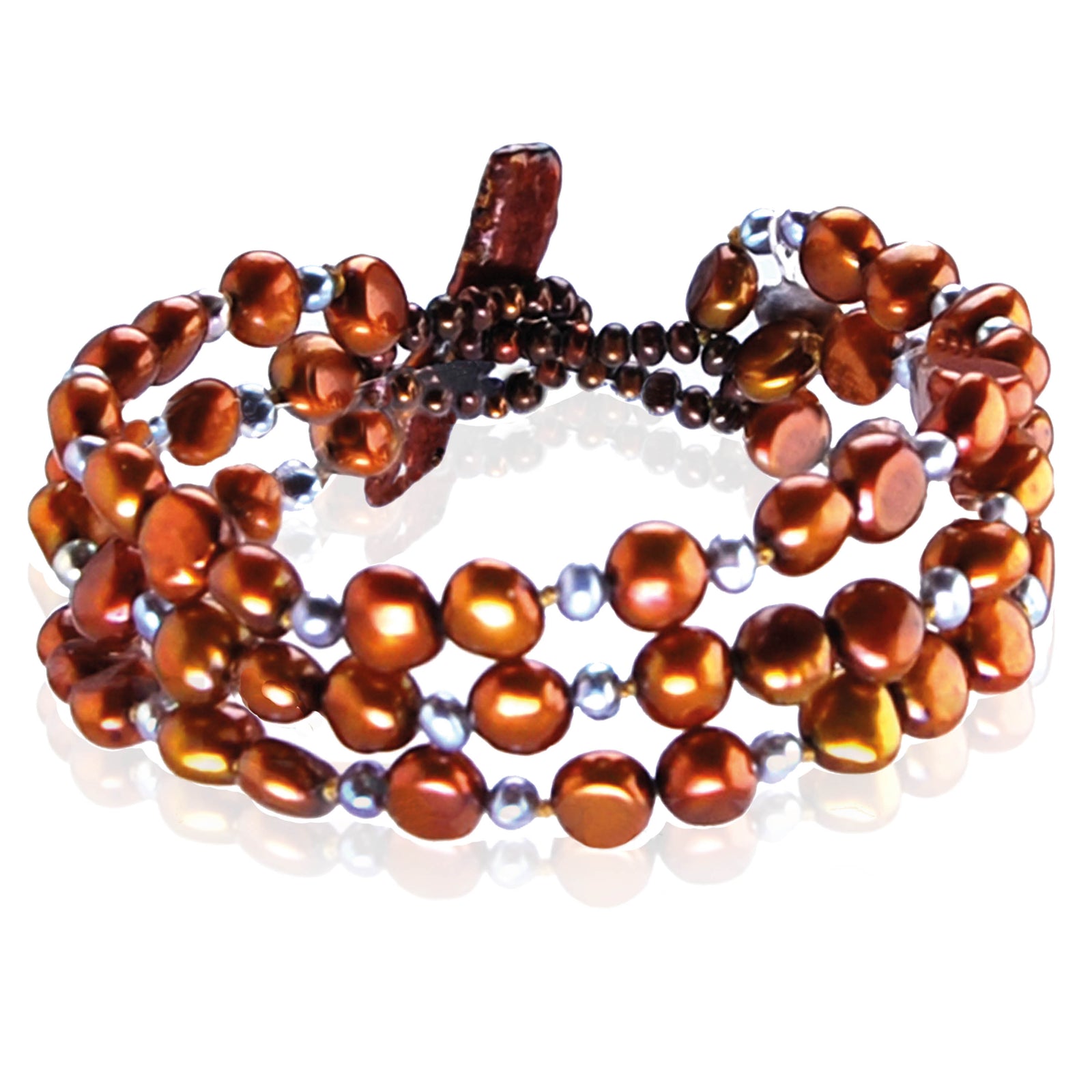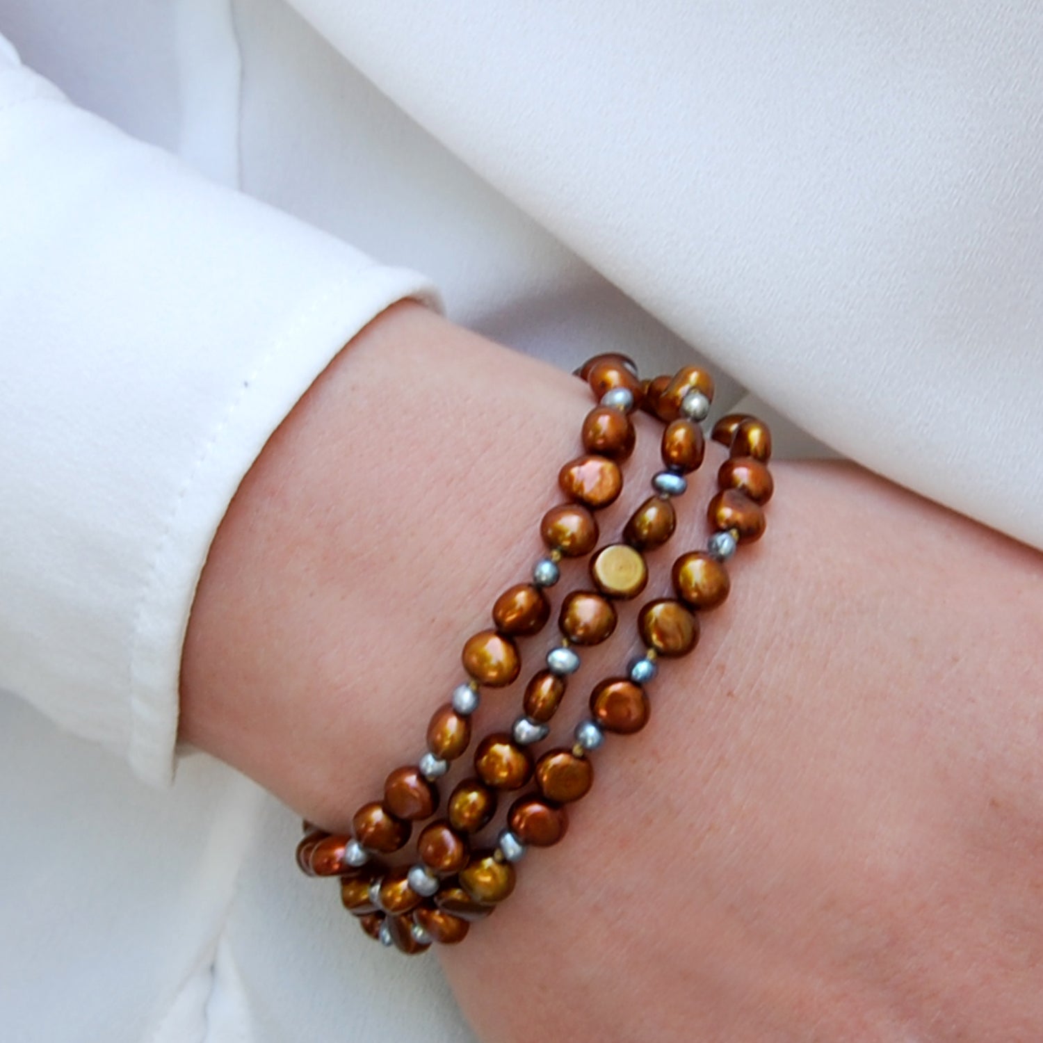 Turn heads with our stunning collection of copper pearl bracelets. Featuring fiery golden undertones balanced out by earthy browns, this shade will bring a sense of warmth and fun to any outfit. Whether you have a fair complexion or olive skin that tans well, our copper pearl bracelets are surprisingly complementary. Better still, they pair beautifully with a range of neutral and vivid shades, so you can wear them with a myriad of outfits.