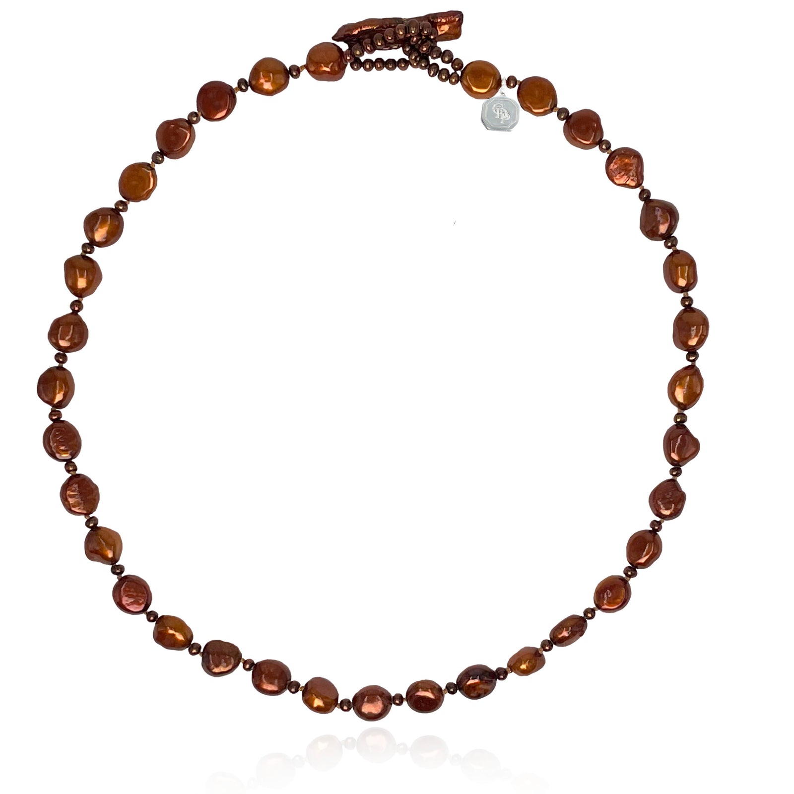 Our copper pearl necklaces combine earthy browns with fiery orange undertones for a vibrant, multi-tonal finish that will turn heads wherever you go.