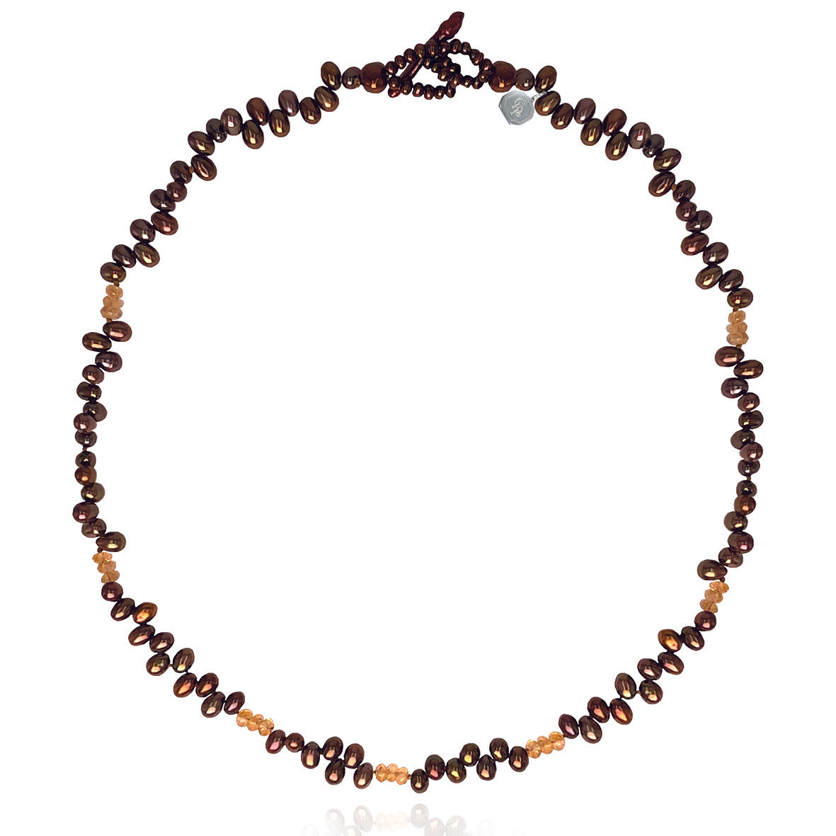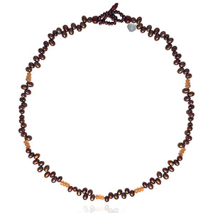 This elegant pearl necklace is crafted using creamy white Freshwater pearls, peppered with spirals of Citrine. Inspired by the age-old tradition of kings and queens who embellished their ceremonial headdress with an extravagant fusion of pearls and gemstones. Wear alone or combined with an elegant 'Twinkling Lights' drop earrings on your wrist.