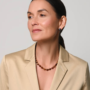The original vintage glamour of a single strand of pearls - this elegant pearl necklace is crafted with warm shades of copper Freshwater pearls. Wear alone or pair with our matching