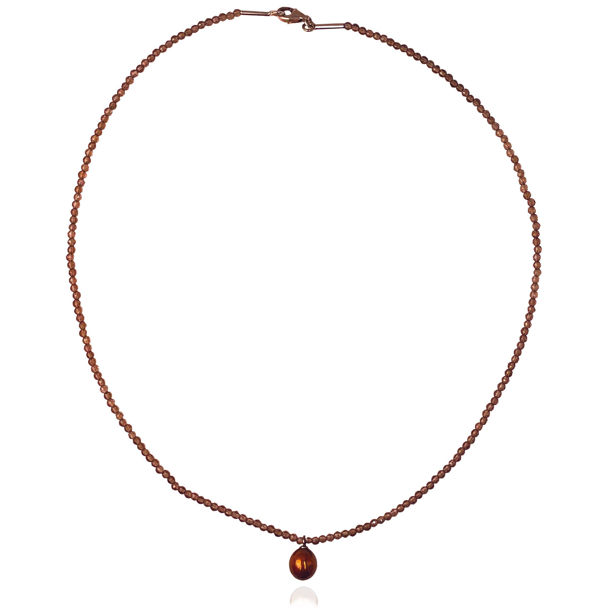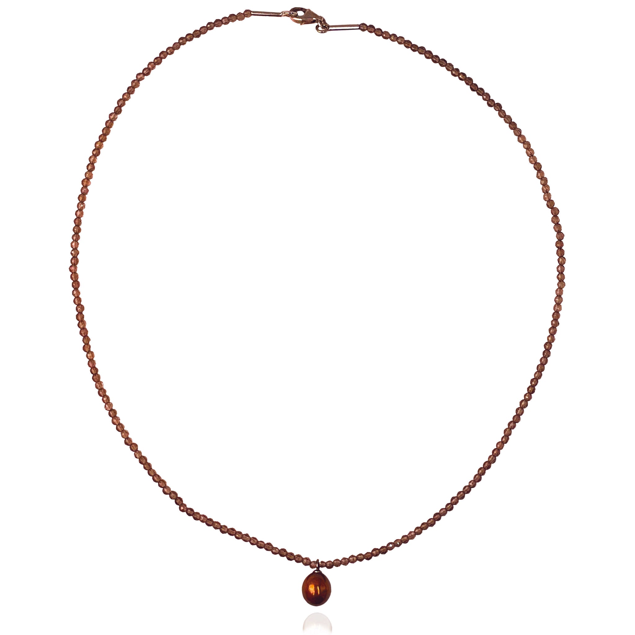 Copper Freshwater Pearl & Smokey Quartz Drop Necklace