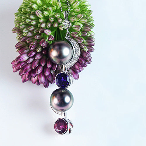 Whether you prefer white or yellow gold, our diamond pearl pendants are available in a choice of 18ct fine gold chains to suit your preference. Our varied range includes luxurious South Sea pearl pendants with diamond accents for a simple yet elegant finish, appropriate for a myriad of occasions. Alternatively, we also design and supply multi-tonal Tahitian diamond pearl pendants with a mix of multicoloured gemstones for a more contemporary, playful feel.