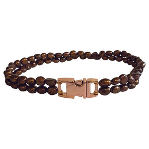 Because your four-legged friend deserves pearls too. This exquisite, made-to-measure collar pairs the warm glow of bronze-copper freshwater pearls with the radiant shine of a rose-gold plated stainless-steel buckle clasp. The perfect balance of luxury and style for your medium-sized dog.