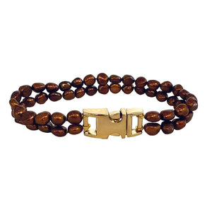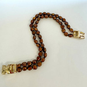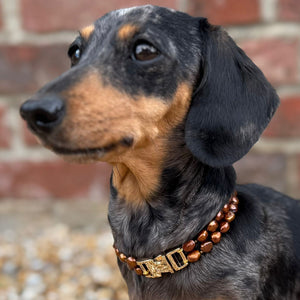 Because your four-legged friend deserves pearls too. This exquisite, made-to-measure collar pairs the warm glow of bronze-copper freshwater pearls with the refined elegance of a yellow-gold plated stainless-steel buckle clasp. The perfect balance of luxury and style for your small-sized dog.