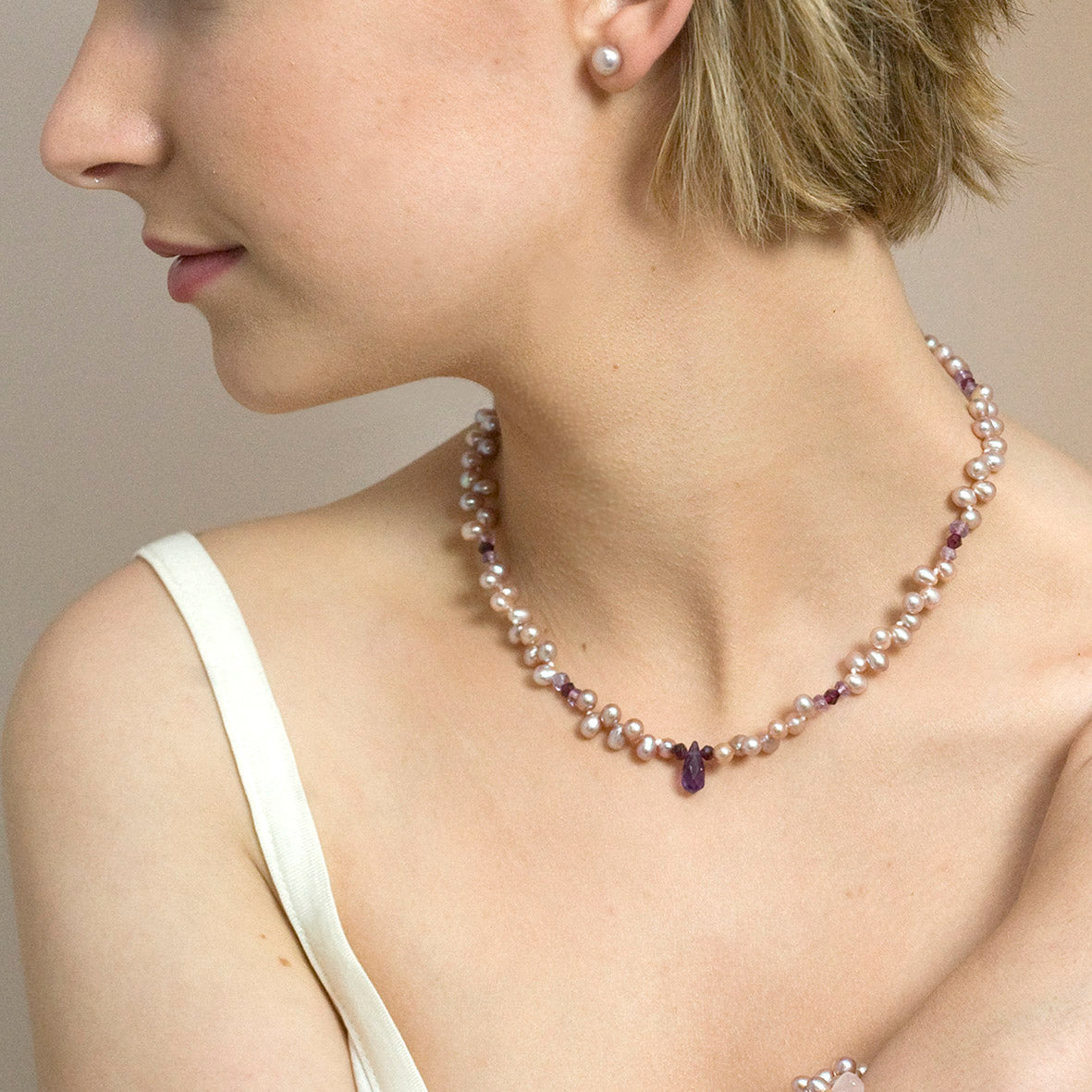 Available in natural white and cream colours, as well as pastel tones of peach, pink, and purple, freshwater pearl jewellery complements a range of skin and hair colours. Designs can be styled to suit both minimalist and maximalist aesthetics, making freshwater pearl jewellery a lovely addition to any outfit, seeing you through both work and play.