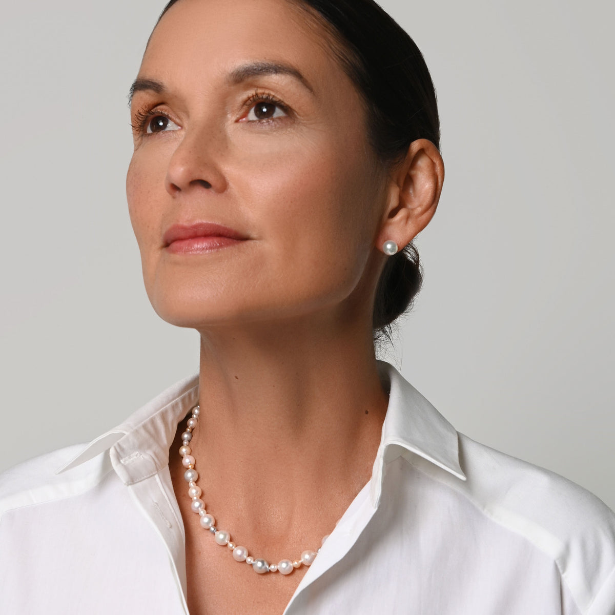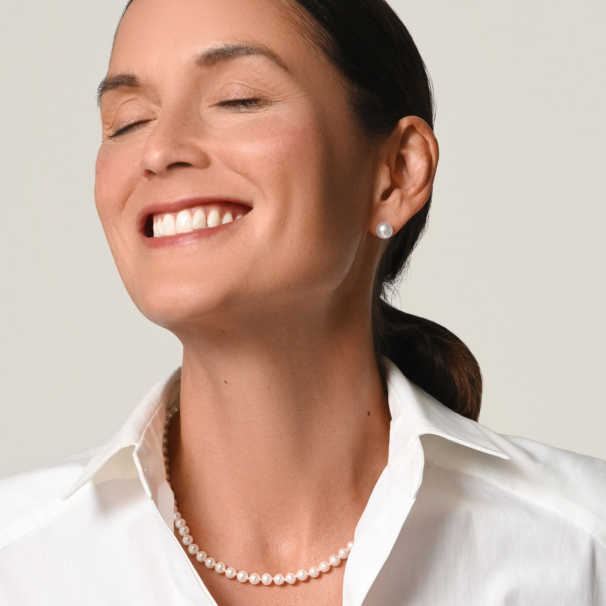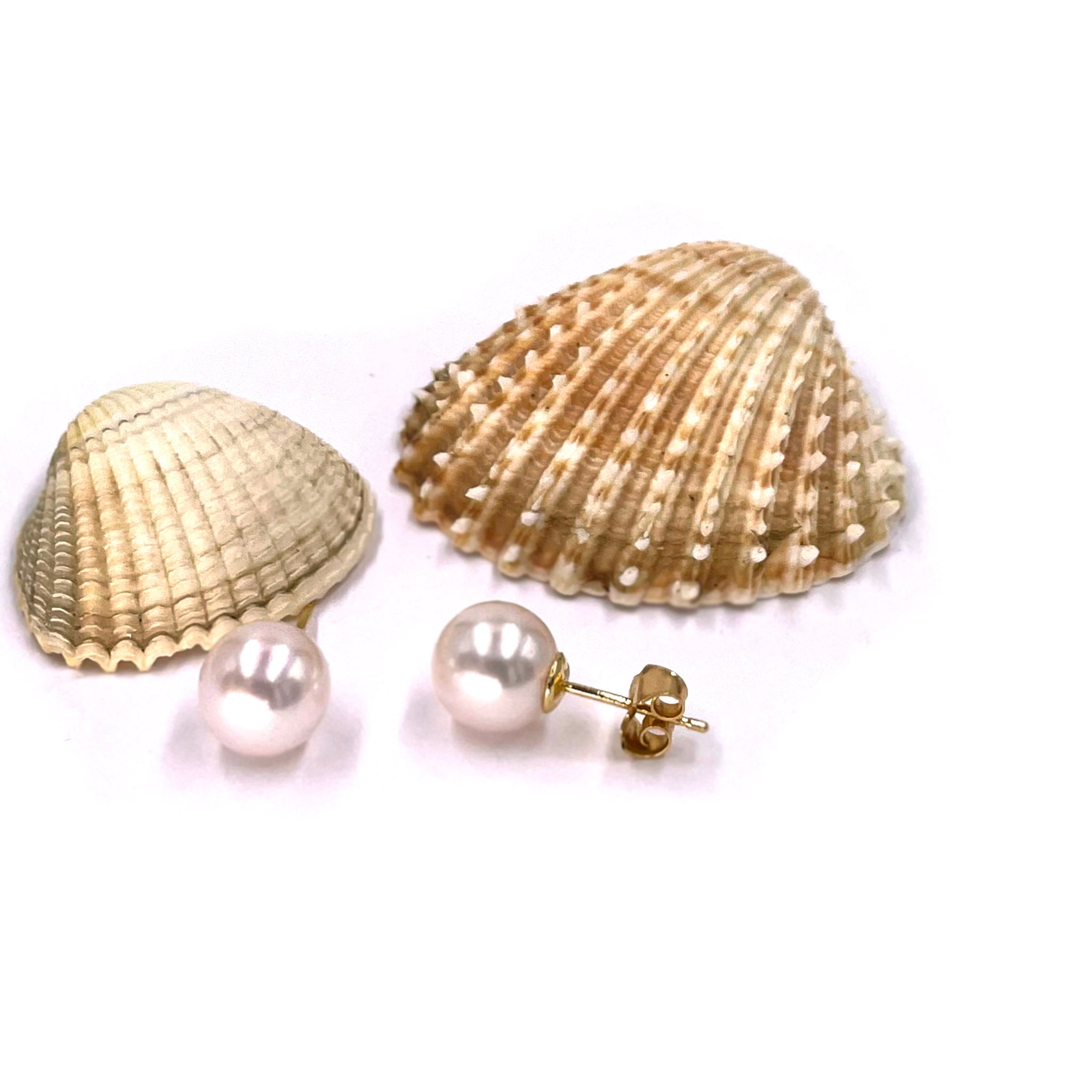 White Akoya Pearl (8.5mm) Stud Earrings on Yellow Gold