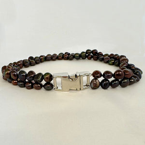Because your four-legged friend deserves pearls too. This striking, made-to-measure collar features the dramatic beauty of deep black freshwater pearls paired with the sleek sophistication of a silver rhodium plated stainless-steel clasp. A bold statement of elegance for your medium-sized dog.