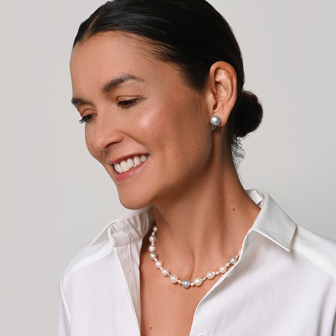 At Coleman Douglas Pearls, we provide an array of grey pearl earrings with a variety of stunning overtones. From cool pale hues to deep greys with hints of green and purple, we have the perfect earrings for your skin tone and hair colour.
