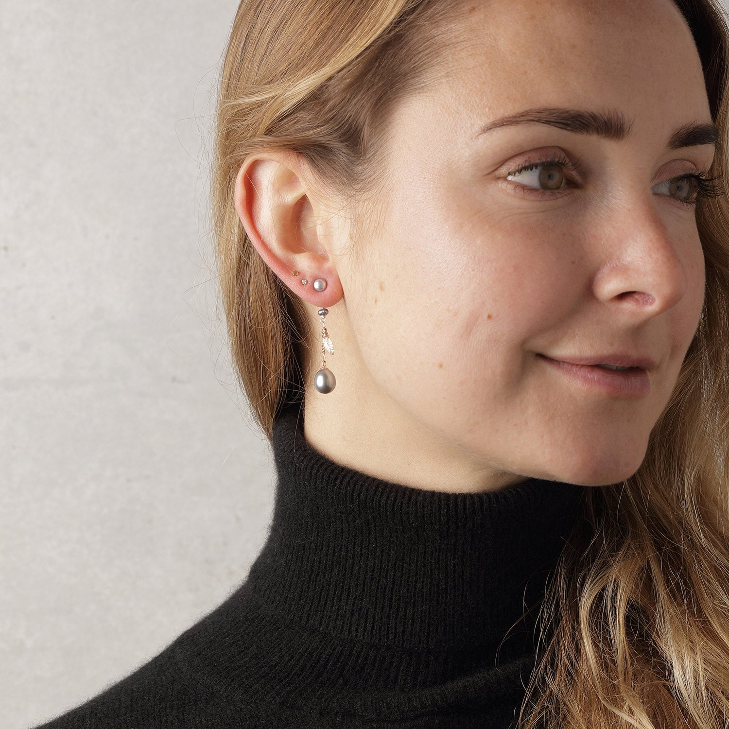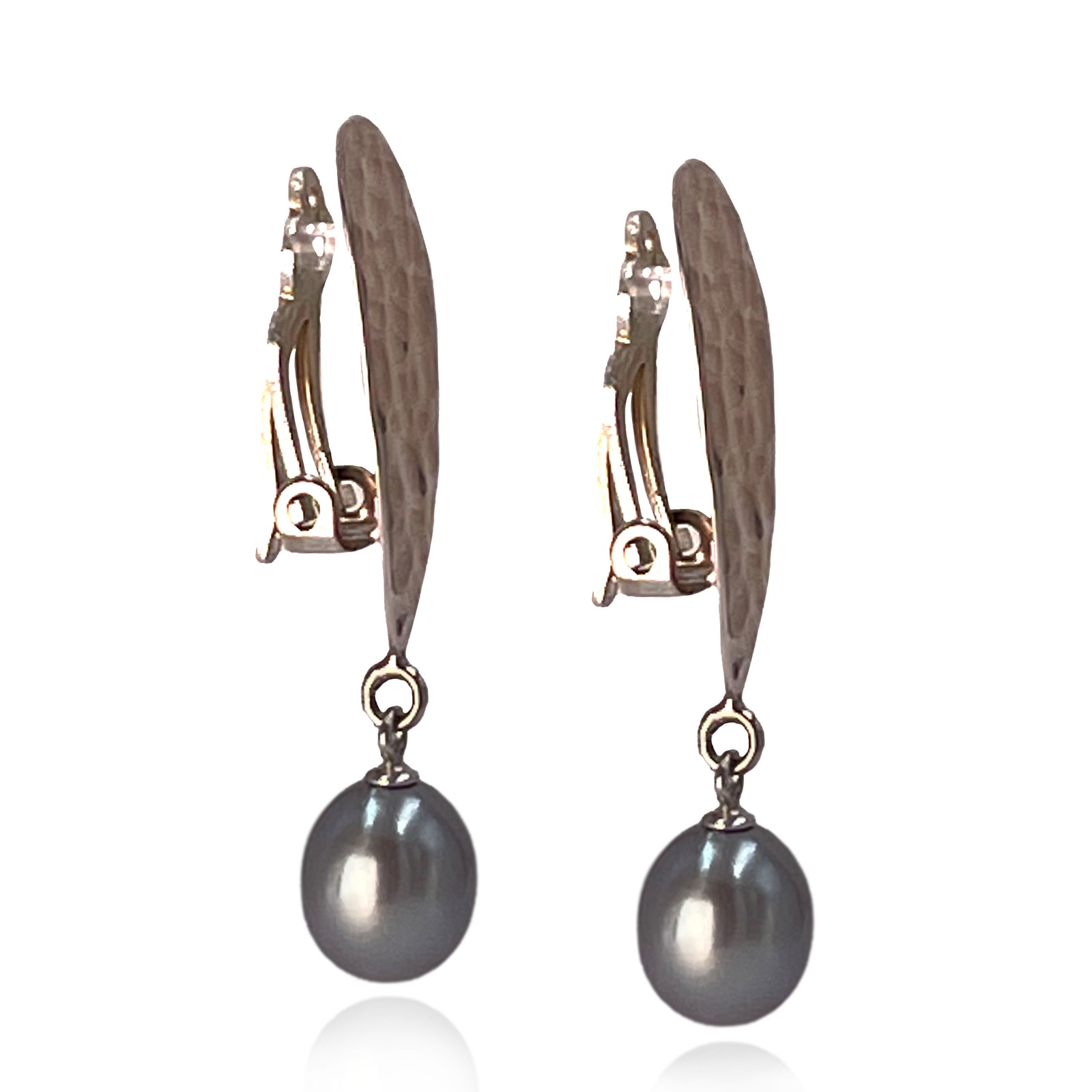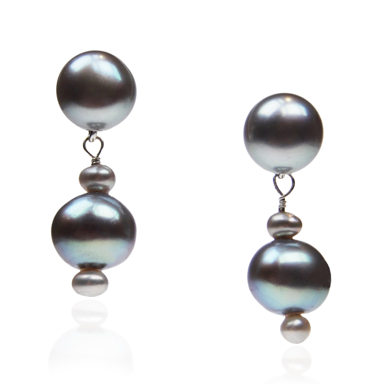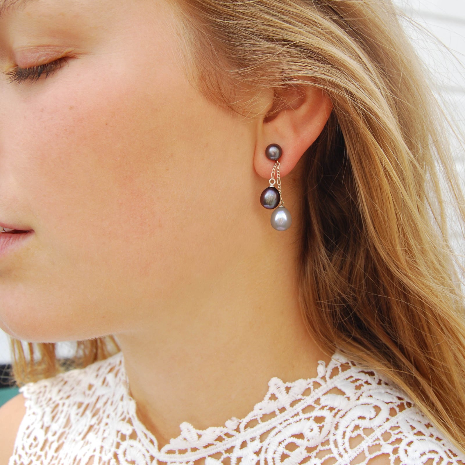 Whether you prefer elaborate designs or more subtle styles, silver or gold metalwork, our grey pearl earrings collection caters to every taste.