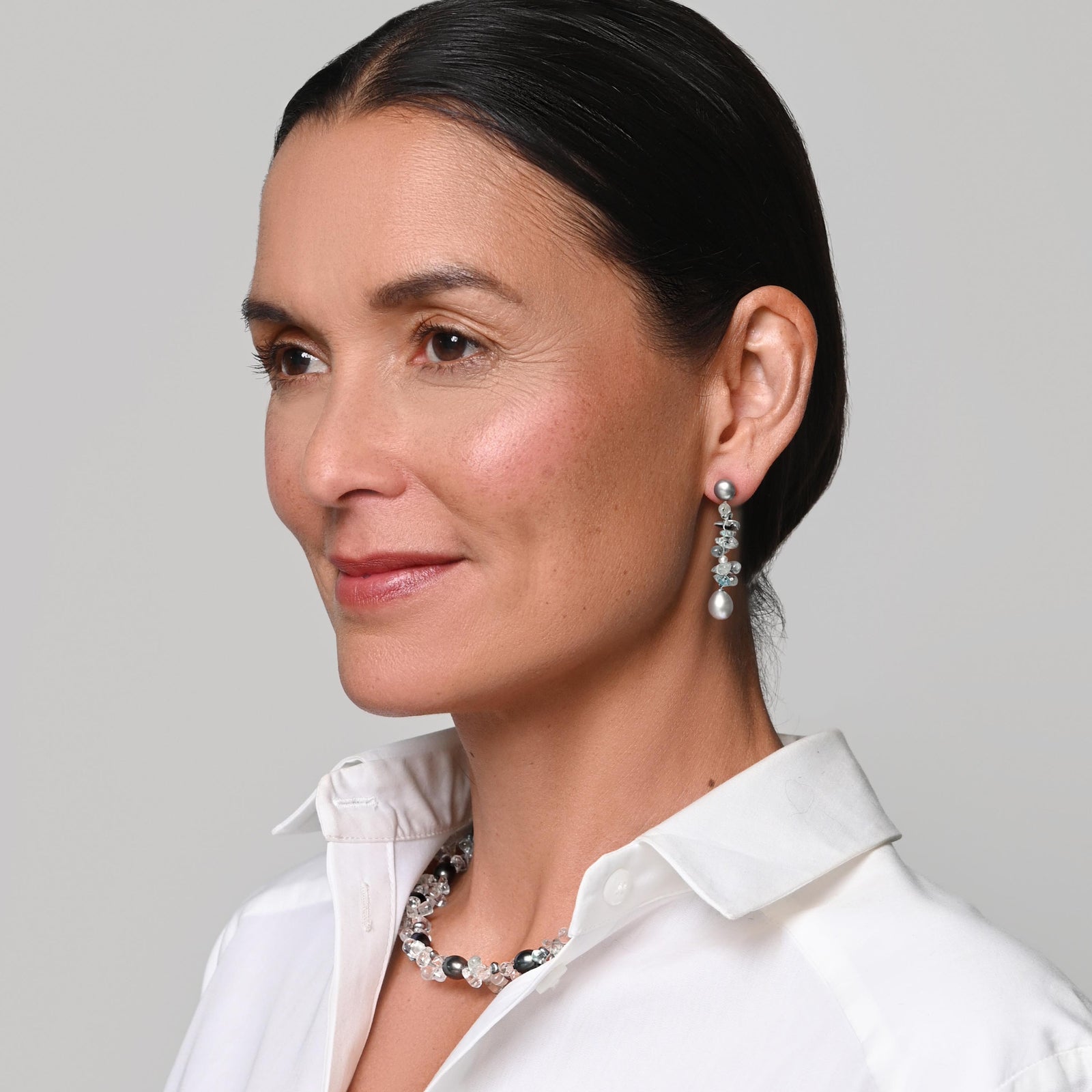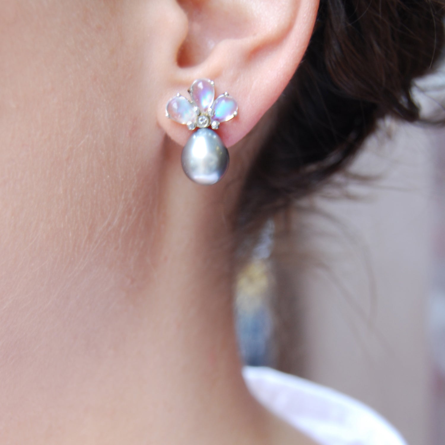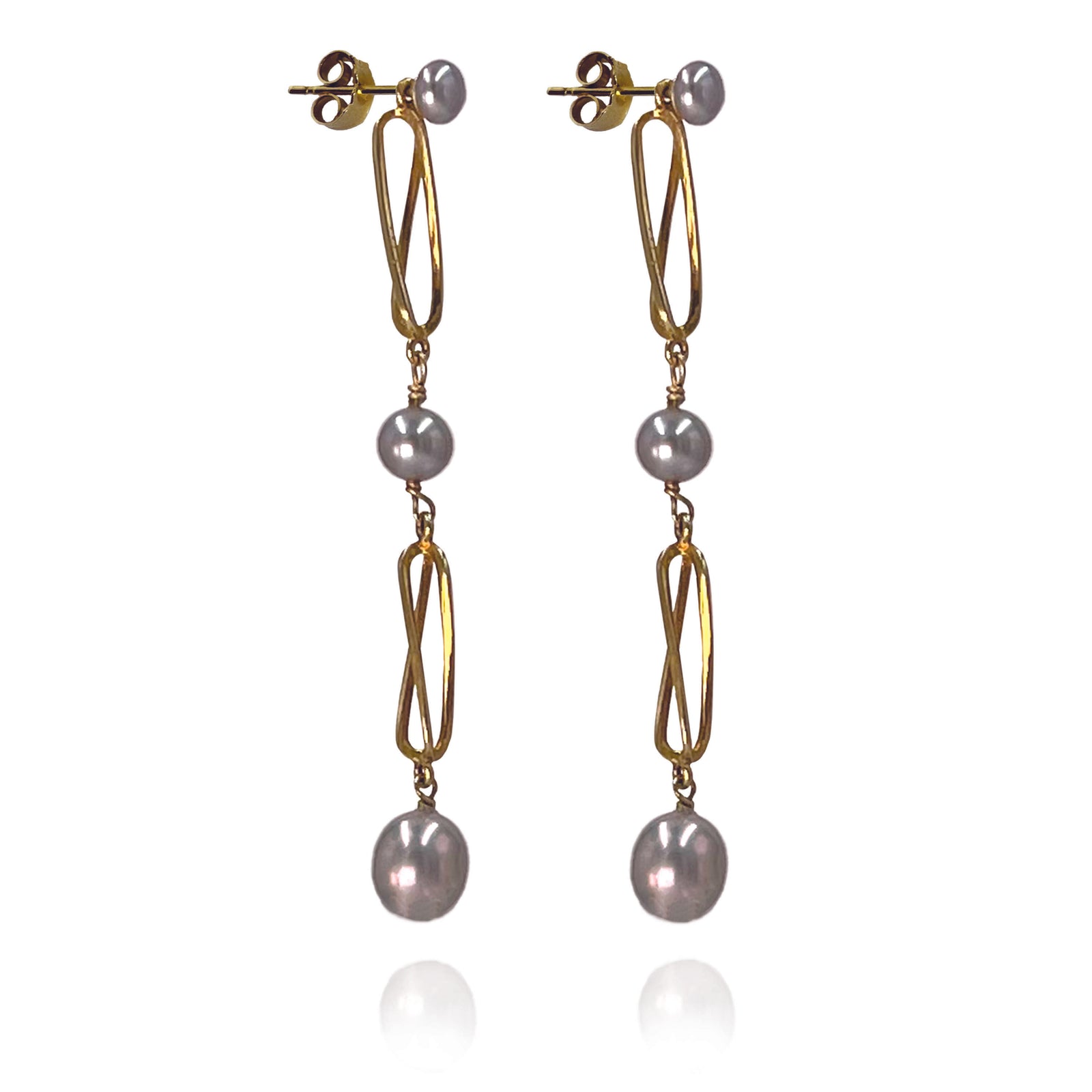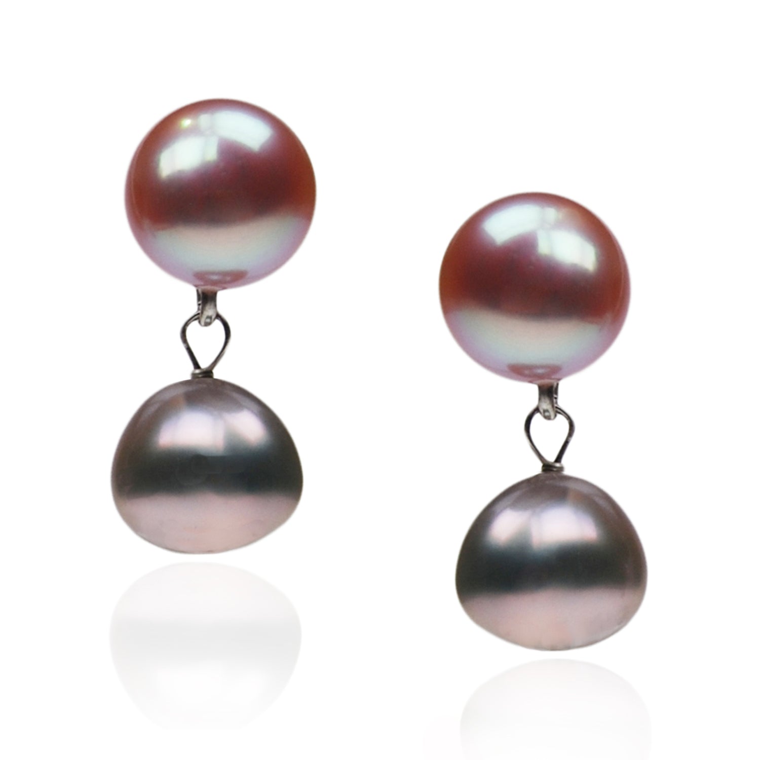 Whether you prefer elaborate designs or more subtle styles, silver or gold metalwork, our grey pearl earrings collection caters to every taste.