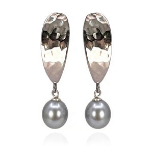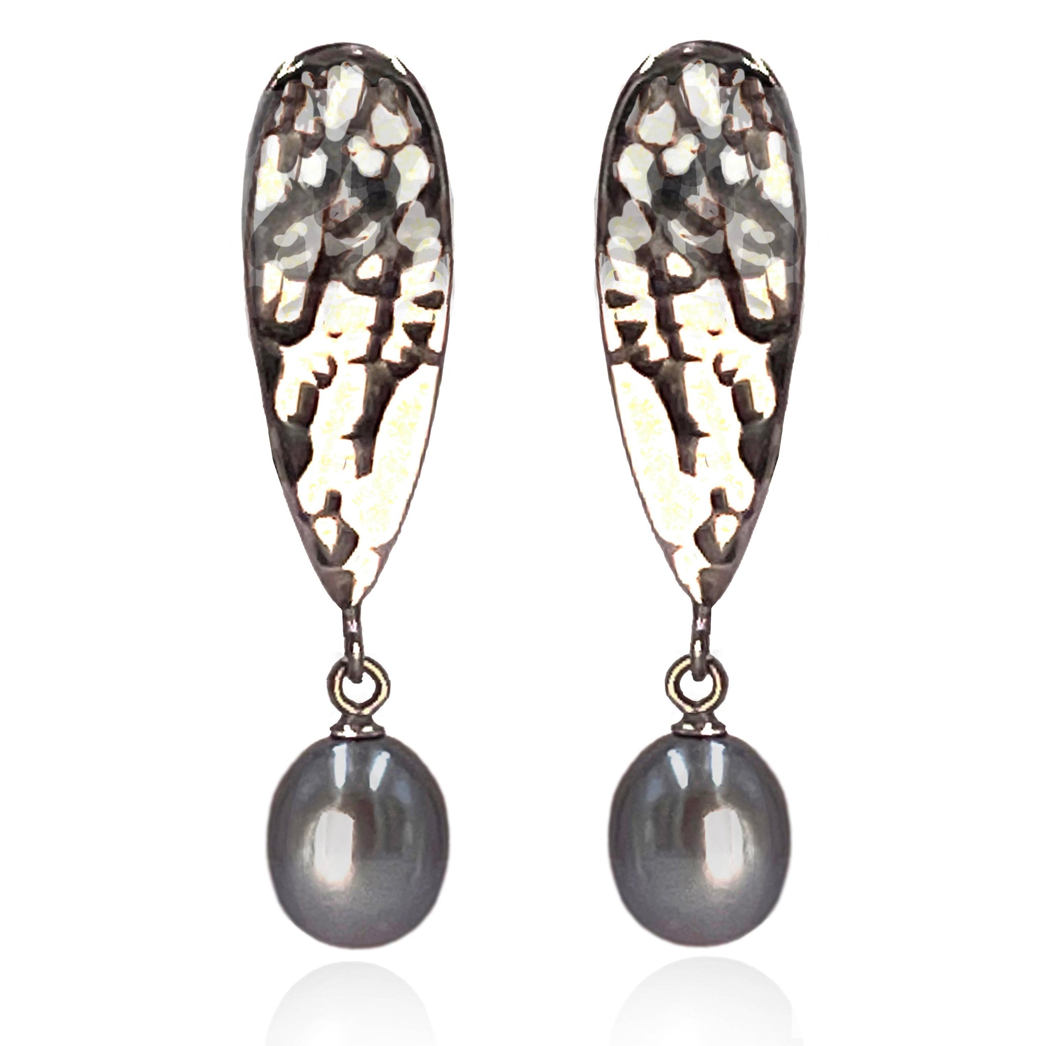 Designed with a textured-hammered finish that catches the light, these Freshwater pearl earrings are hand-crafted in Sterling Silver. This pared-back design gives off a sense of relaxed-glamour, making you feel fabulous whatever the occasion. Wear alone, or together with an elegant sculpted silver ring.