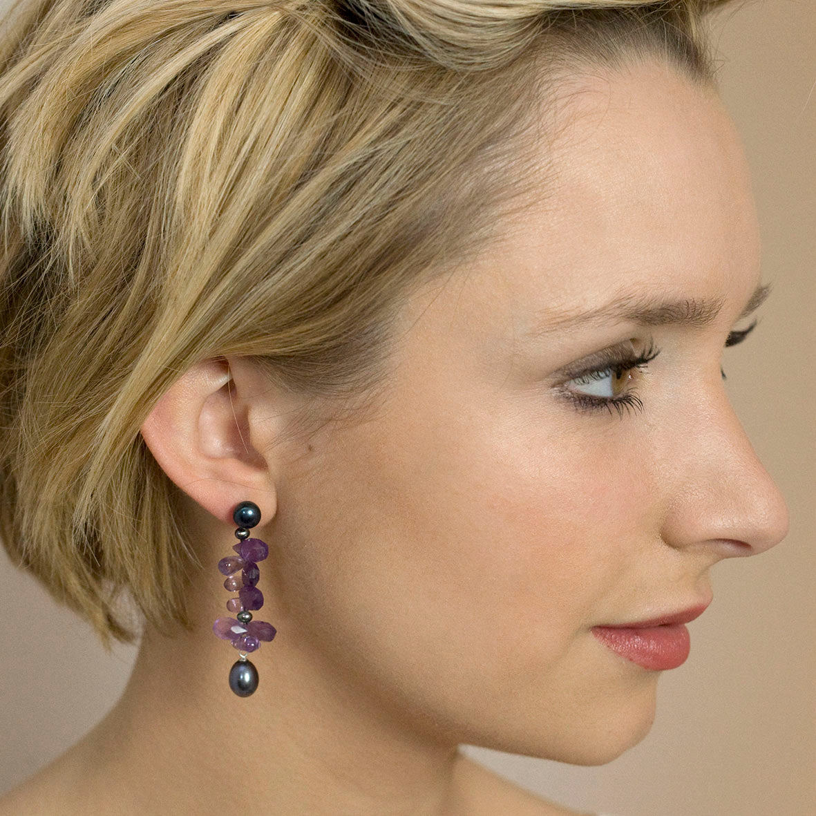 Opt for baroque or leather styles for a modern twist on classic pearl earrings, or really make a statement with a vibrant mix of pearls and semi-precious gemstones like aquamarine, amethyst and tourmaline.