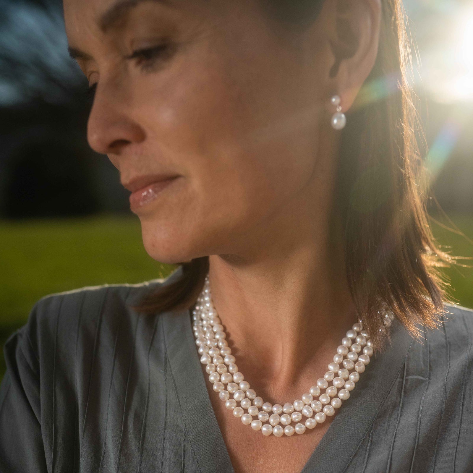 Better yet, in addition to being aesthetically pleasing, our standout multi-strand pearl necklaces can also be used to cleverly conceal wrinkles at the base of the neck in older age.