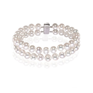 This elegant bracelet delicately layers two strands of Freshwater pearls on top of eachother. The layering creates a dramatic effect which can seamlessly transition from day to night. These warm shades of white and cream can be worn alone or combined with the matching double strand necklace.