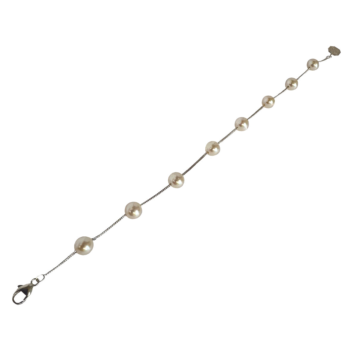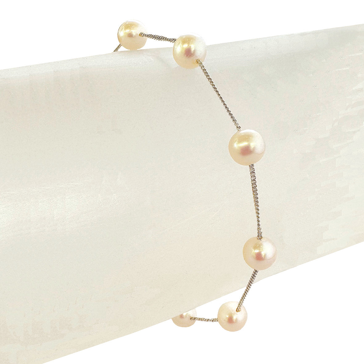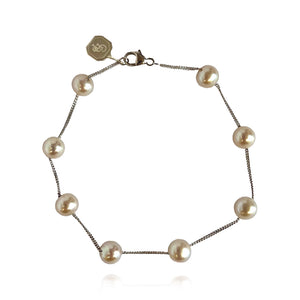A Sterling Silver bracelet hand-set with creamy white Freshwater pearls. Evolved from our iconic pearl drop pendant, this design is an ideal everyday gift to yourself or a loved one. An understated design. Wear alone or layer with a matching necklace.