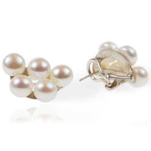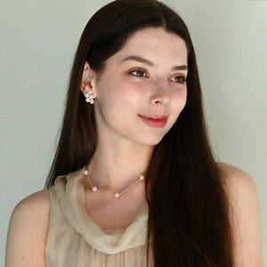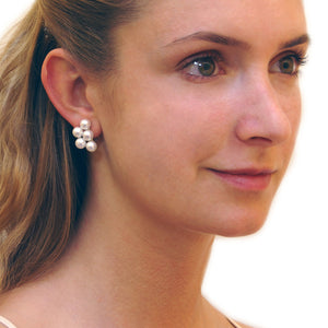 Suspended on Sterling Silver branches these creamy white Freshwater pearl D-shaped 'cuffs' hug your ear, giving a contemporary twist to a classic look, by framing your features. Wear alone or pack-a-punch with our white Freshwater pearl 'Morse Code' lariat.