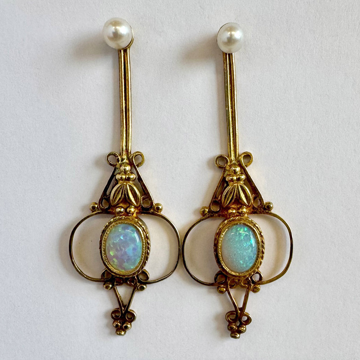 • Material: White Freshwater Pearl,18ct & 15ct Yellow Gold, Natural Opal