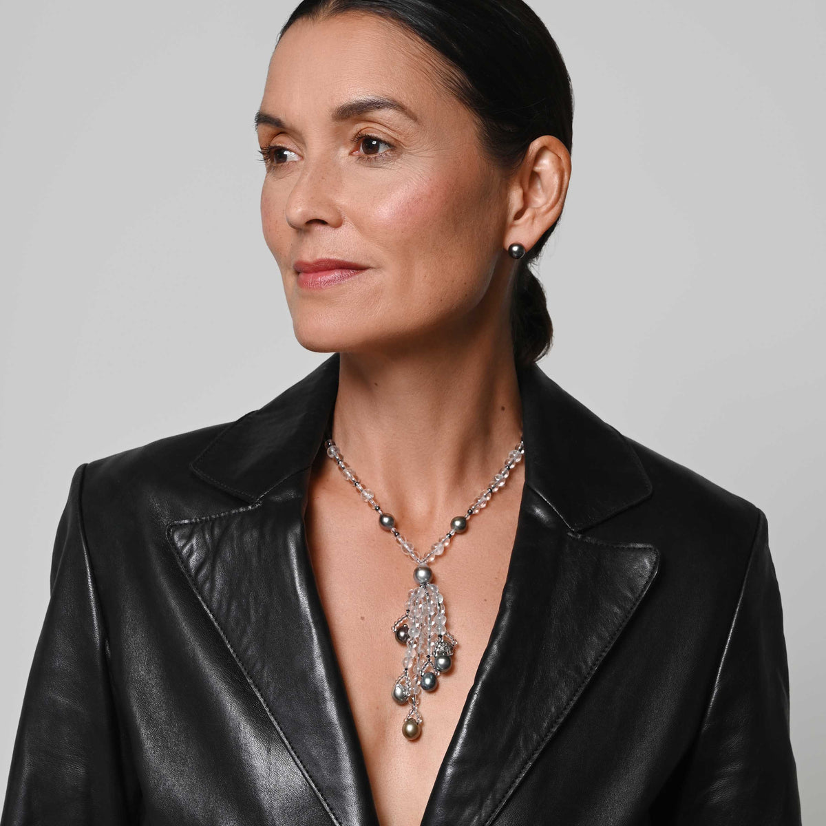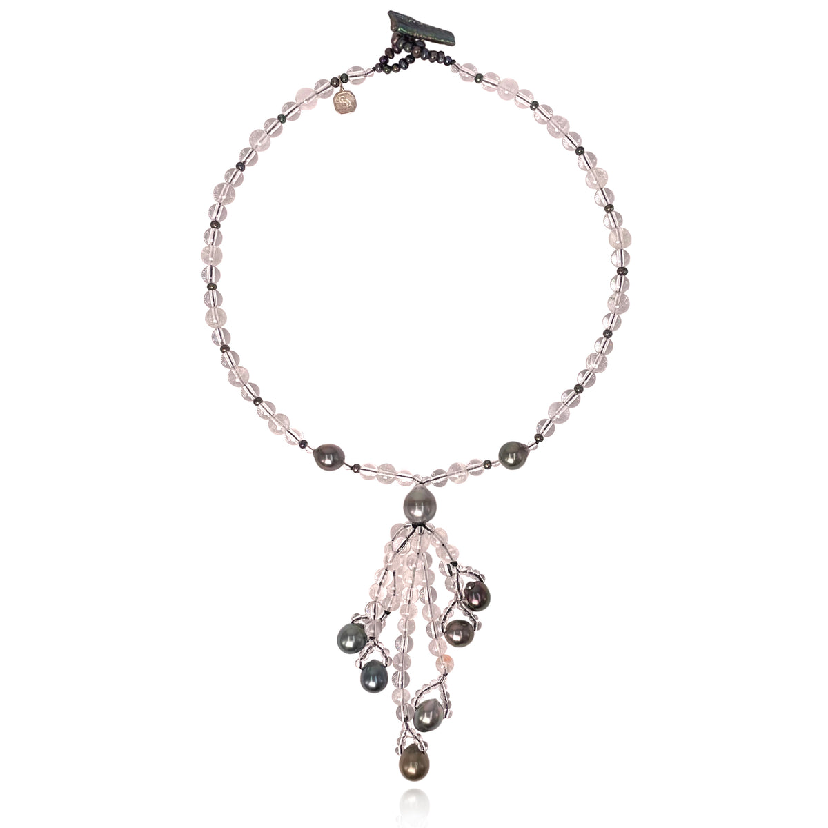 • Material: Black-grey Tahitian pearl, rock crystal