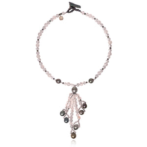 Black Tahitian Pearl & Rock Crystal 'Tsarina' Drop Necklace