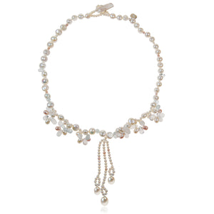 Morse Code' Pearl and Semi Precious Stone Necklace in White