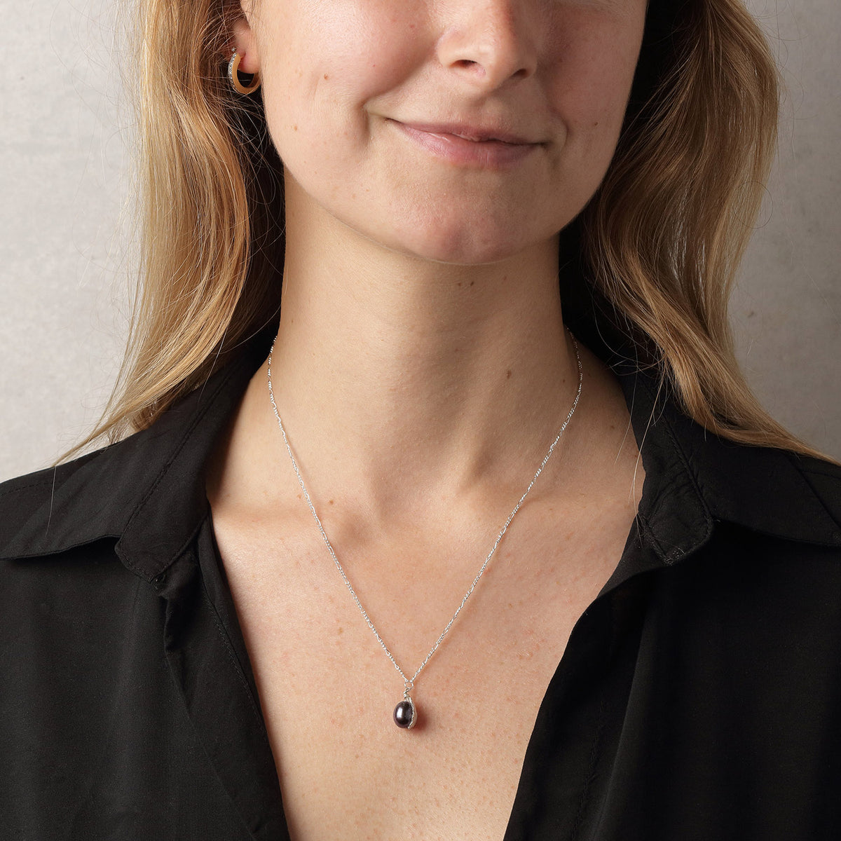 Black Freshwater Pearl 'Back To Basics' Simple Silver Pendant