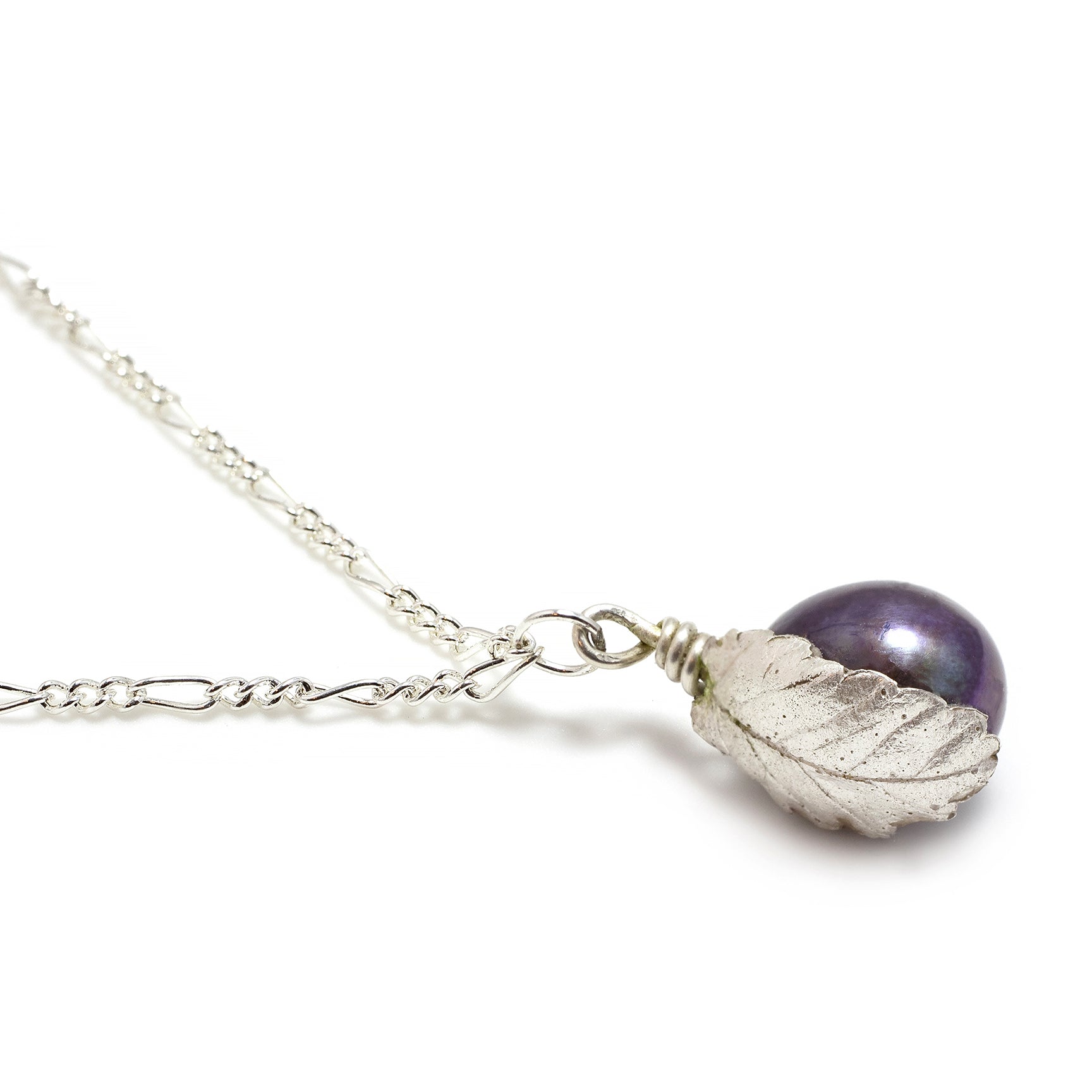 When the perfect pearl colour is matched to your complexion, the pearl literally “lights-up” your face, enhancing your natural beauty. This first mother-daughter collaboration - “Back to Basics” - uses simple design to put the focus back on the pearl - a peacock black pearl delicately encased in a sterling silver sculpted leaf hangs suspended from a matching chain. Call or email us to ensure you choose the perfect pearl to accentuate your natural beauty. Wear alone or layer with matching pearls earrings.