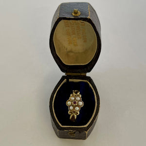 Rare White Natural Pearl & Ruby Cluster Georgian Ring