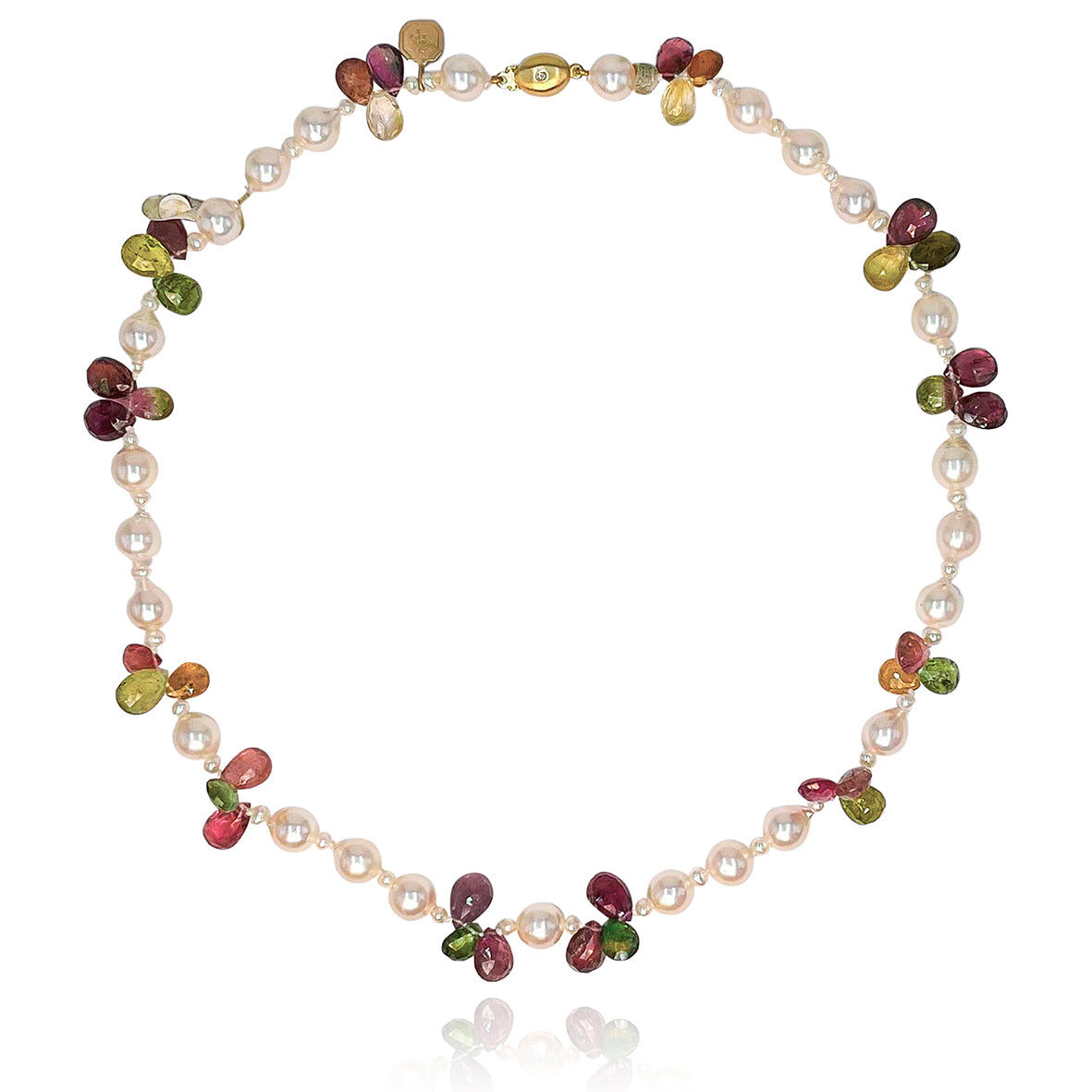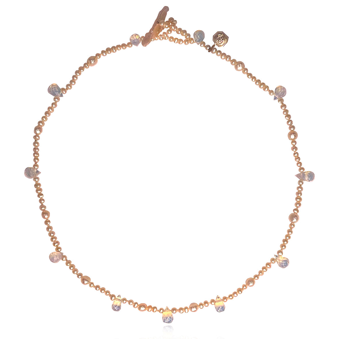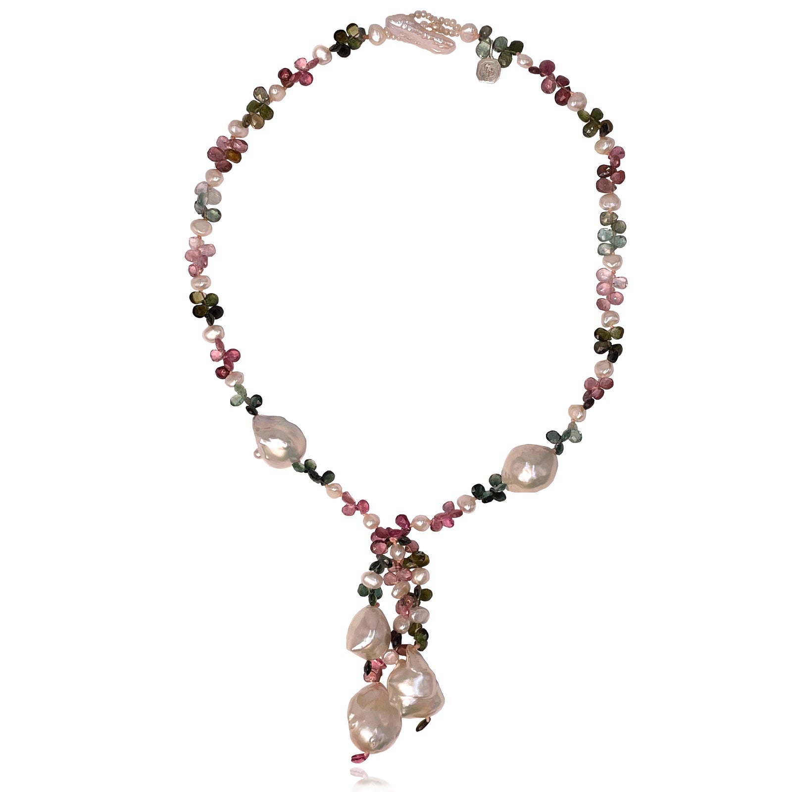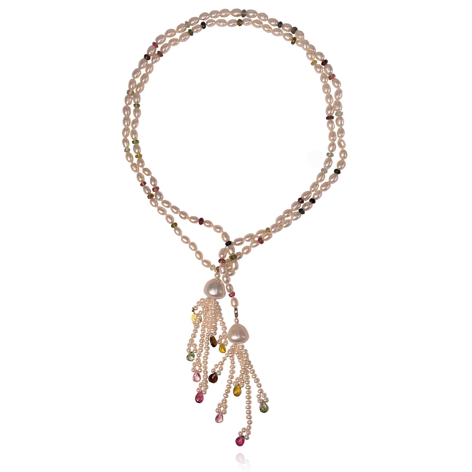 Keep things simple with a mixed-sized pearl necklace in soft grey or pink, or brighten neutral outfits with a colourful pearl drop design finished with semi-precious stones.