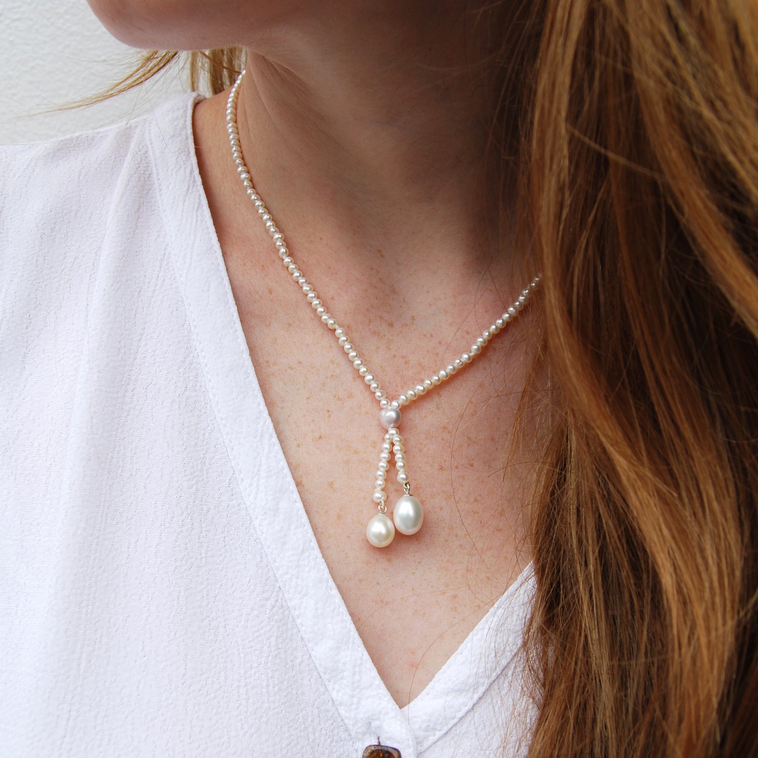 Our classic Akoya single strand pearl necklaces in white are the epitome of vintage glamour, while our lasso and crystal styles offer a modern twist on an old favourite.