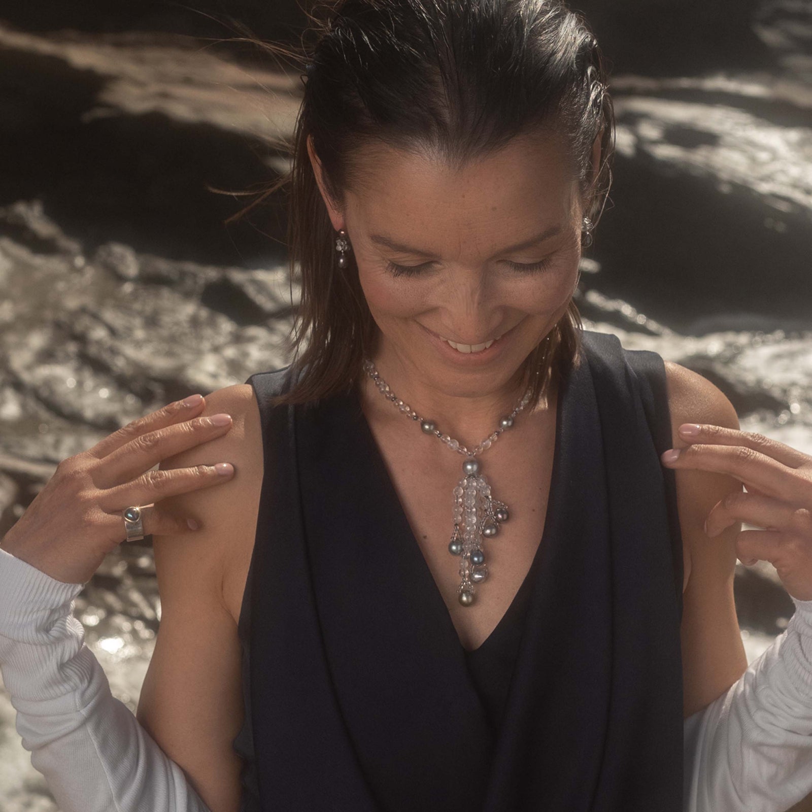 Bring a hint of luxury to any daytime look by pairing your jeans-and-shirt combination with a set of Tahitian pearl & diamond ‘huggies’. Alternatively, add allure to an evening gown with our award-winning black Tahitian pearl & labradorite necklace, inspired by the vivid colours of Mexican coral reefs and stormy sea life.
