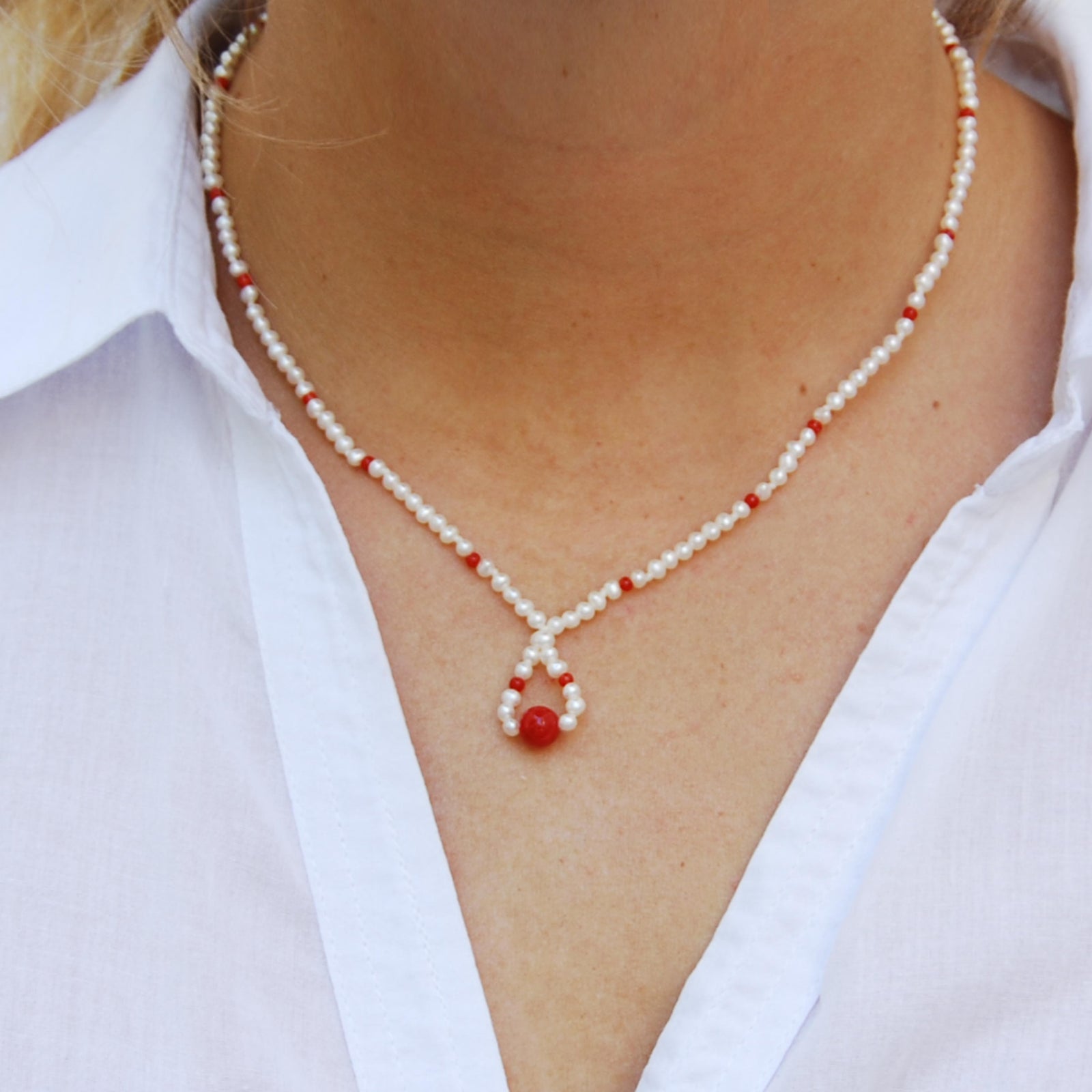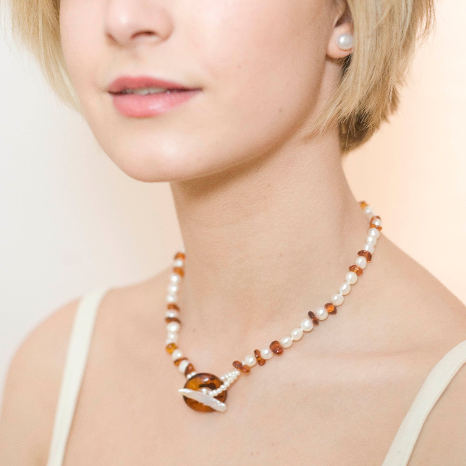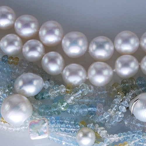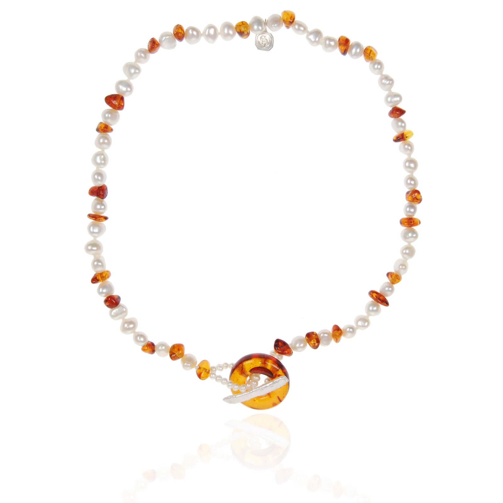 Alternatively, why not go bold and show off your personality with a hint of colour? Our striking white pearl necklaces with semi-precious stone feature gems like aquamarine and fiery amber, so that you’ll never get lost in a crowd at parties.