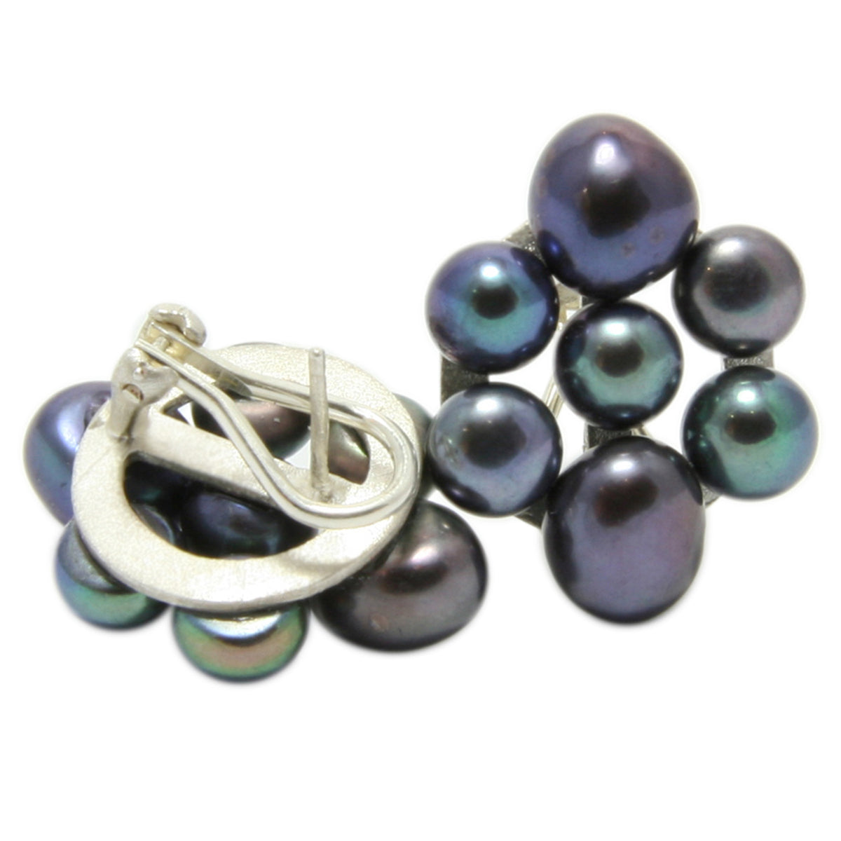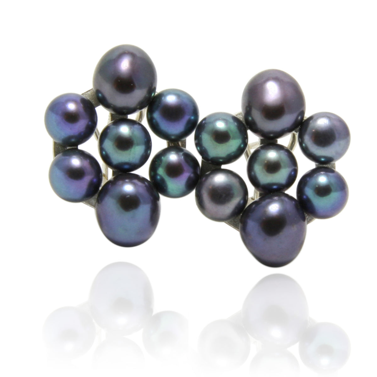 Suspended on Sterling Silver branches these peacock black Freshwater pearl oval-shaped 'cuffs' hug your ear, giving a contemporary twist to a classic look. Wear alone or coupled with a matching bold Freshwater pearl necklace.