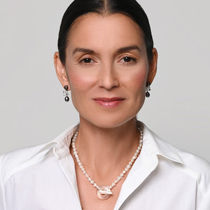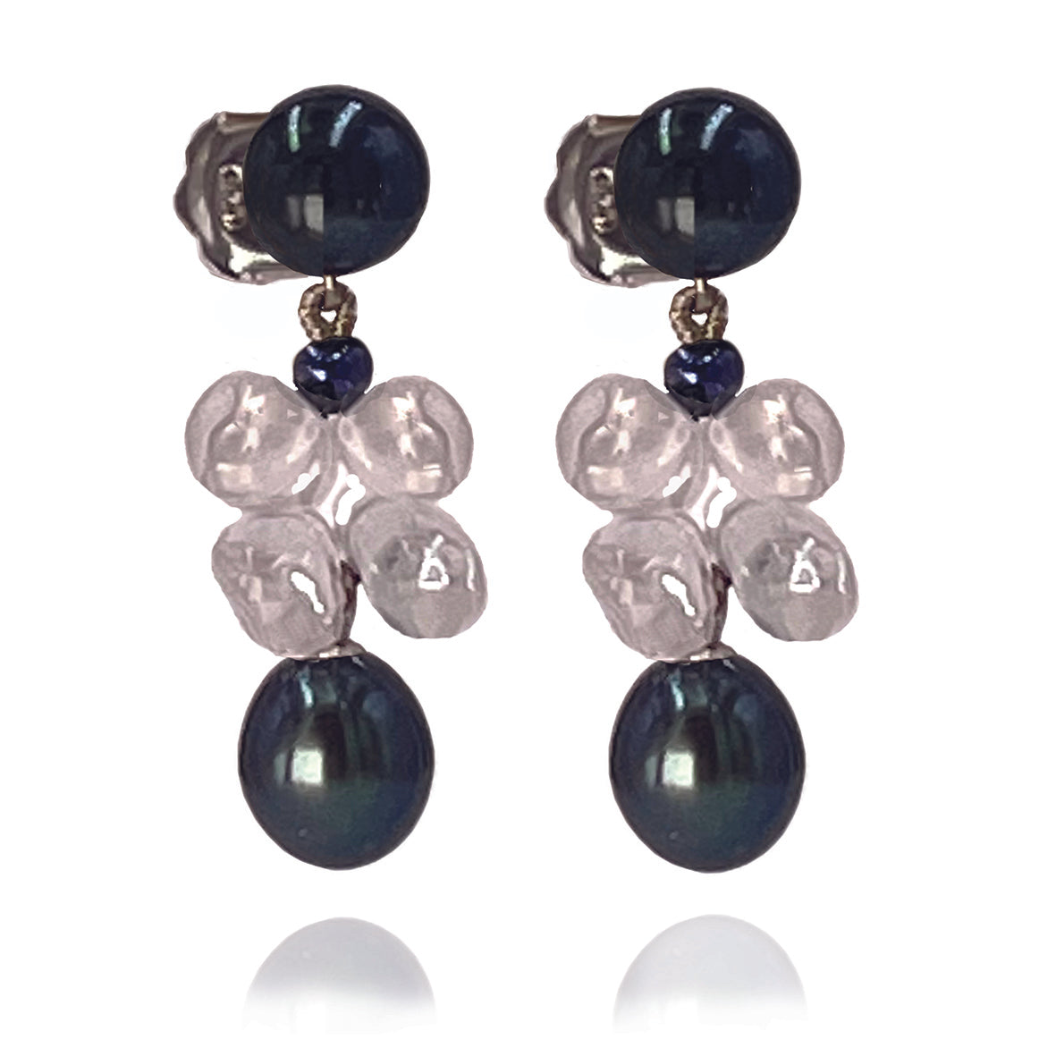 • Material: Black Freshwater Pearl, Rock Crystal, Sterling Silver Earring Fixture