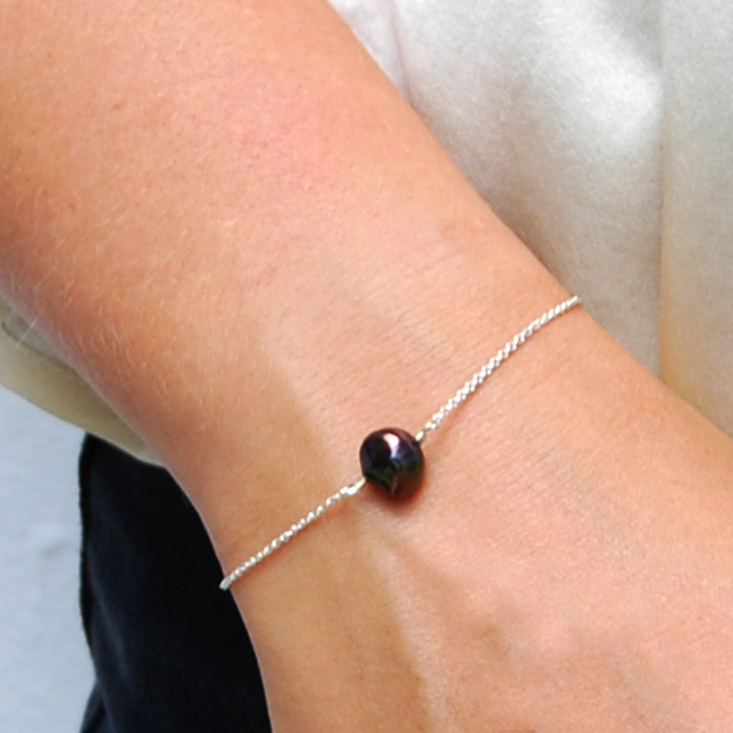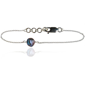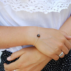 A sterling silver bracelet hand-set with a stunning black Freshwater pearl. Evolved from our iconic pearl drop pendant, this design is an ideal everyday gift to yourself or a loved one. An understated design - the singular pearl remains your “little secret”. Wear alone or combined with a simple Freshwater pearl pendant.