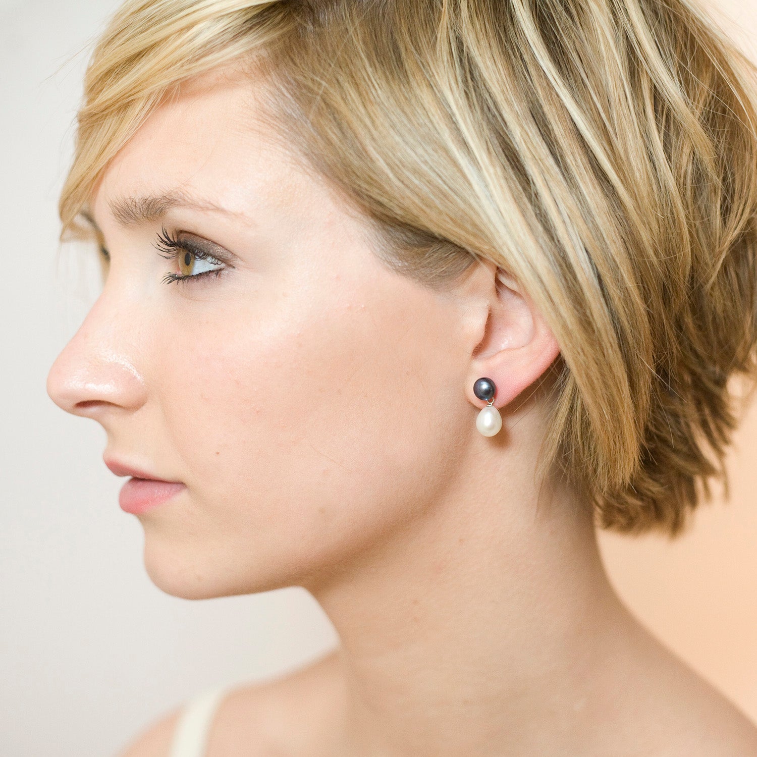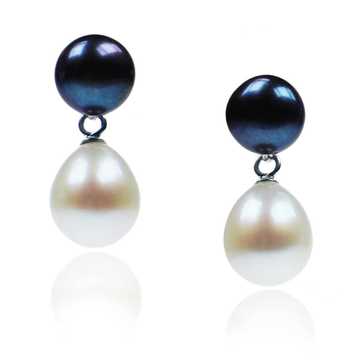 Black & White Freshwater Pearl Mini Silver Drop Earrings