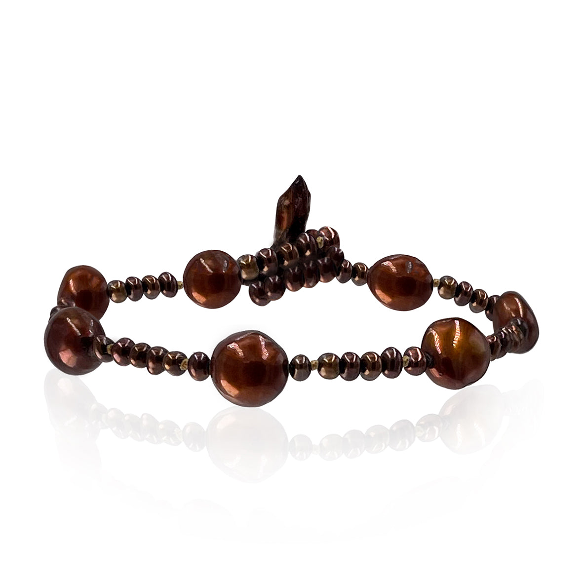 This elegant pearl bracelet is hand-threaded with warm copper Freshwater pearls. Wear alone or combined with a matching copper Freshwater pearl necklace to complete the look.