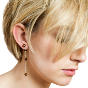 'Build your own!' Delicate droplets of copper Seed Freshwater pearls hang suspended on Sterling Silver, creating an eye-catching movement. The pearl drop can easily be removed, leaving a simple pair of studs with a tiny pearl drop - understated elegance. The versatility of this design knows no bounds (typifying Chrissie’s mix and match philosophy). Wear alone, or style with a