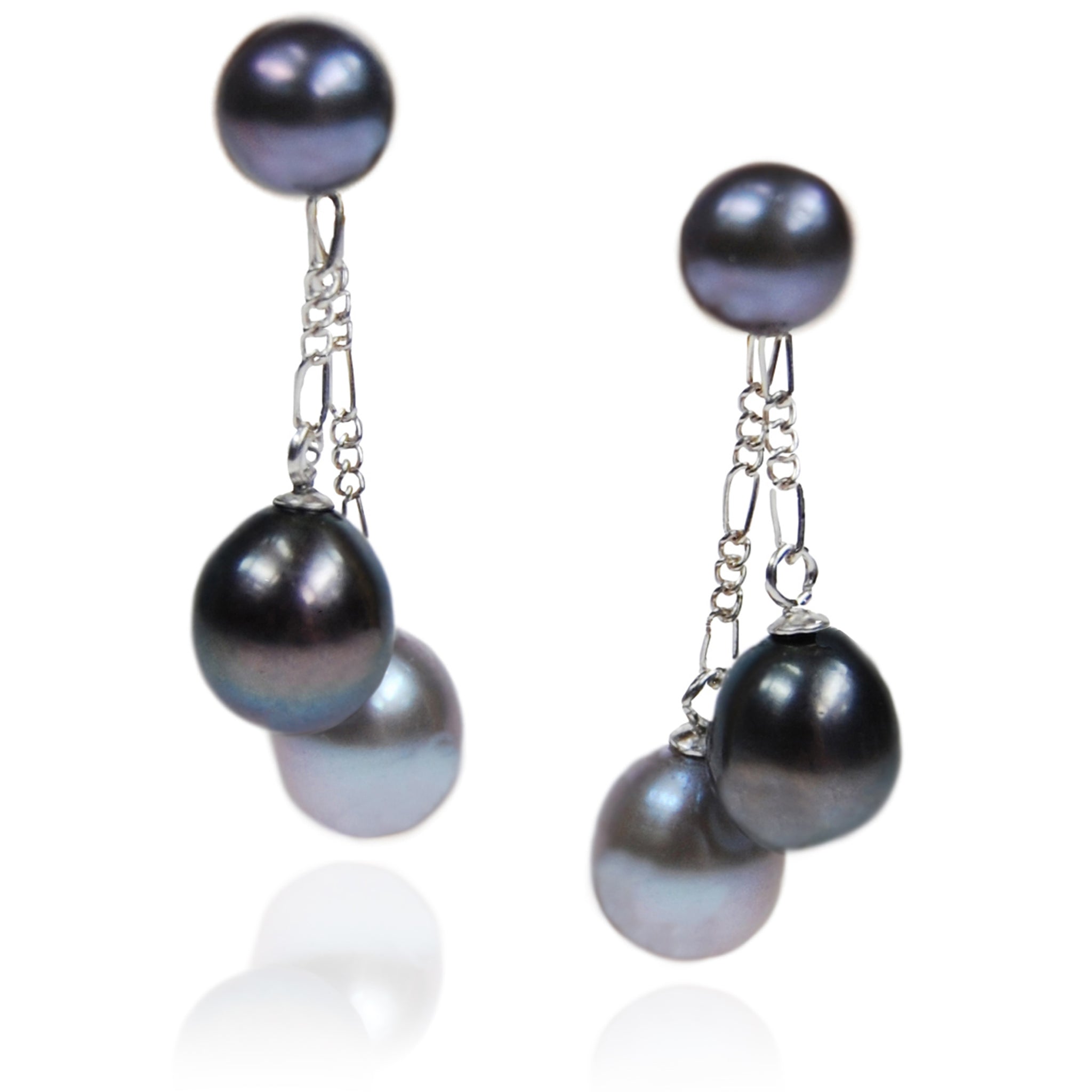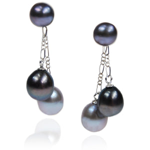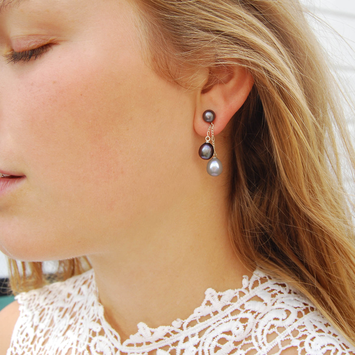 Grey & Black Freshwater Pearl Double Drop Earrings