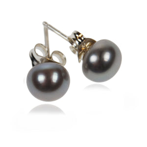 Small stud earrings crafted in Sterling Silver and hand-set with cool grey Freshwater pearls. Each pearl has been hand-selected for its even shape and warm creamy lustre; beautifully reflecting the light to enhance your natural beauty. Complete this classic look by pairing these studs with a simple