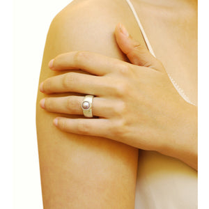 Designed with a smooth finish, this Freshwater pearl ring is hand-crafted in Sterling Silver. This pared-back design gives off a sense of relaxed-glamour, making you feel fabulous whatever the occasion. Wear alone, or together with an elegantly understated pearl drop pendant.