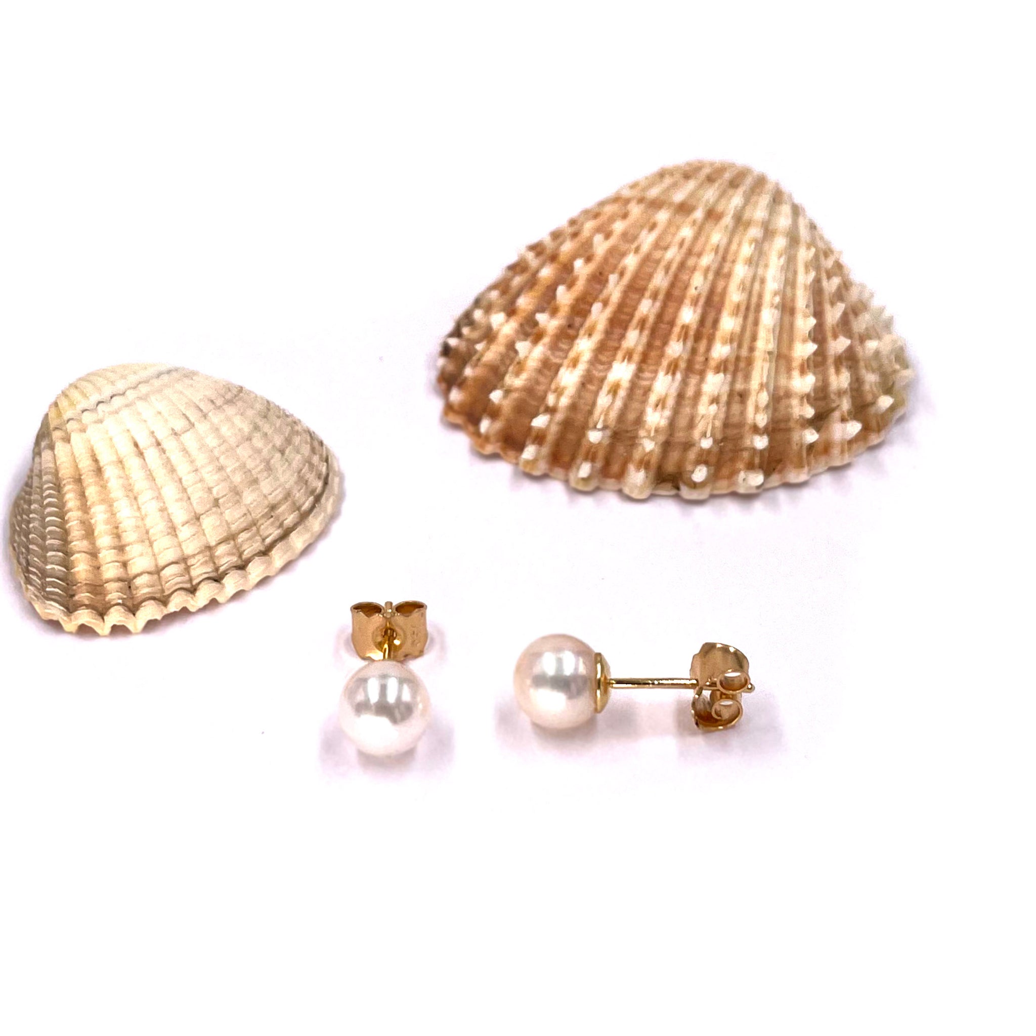 White Akoya Pearl (6.5mm) Stud Earrings on Yellow Gold