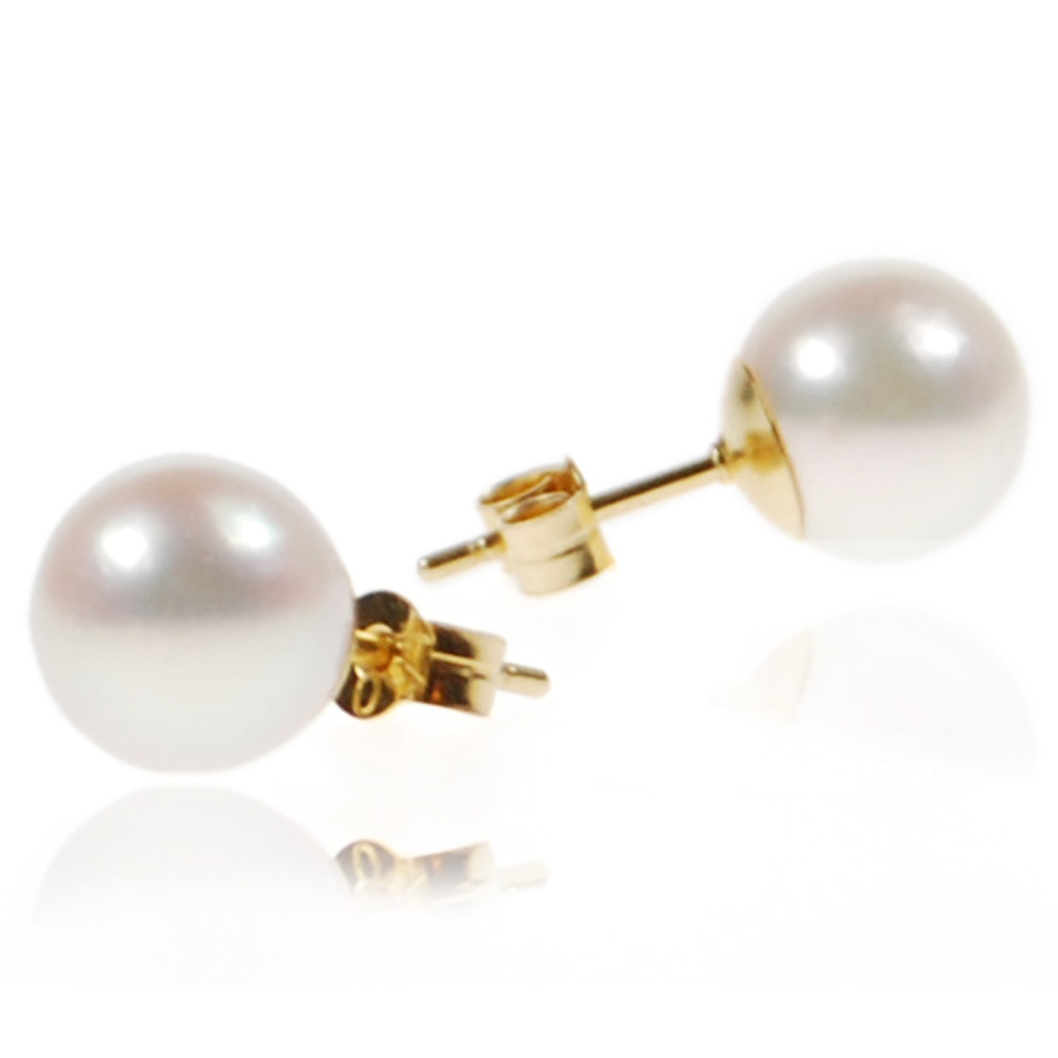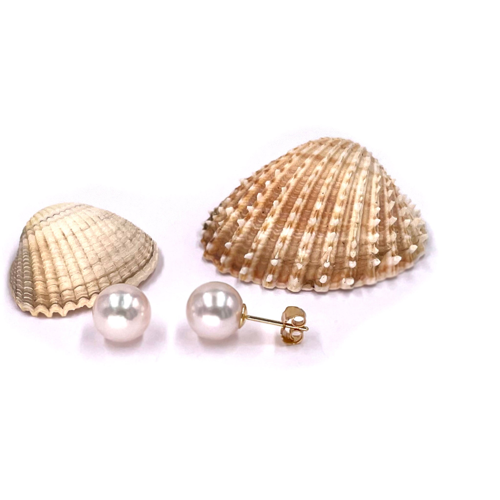 White Akoya Pearl (9.5mm) Stud Earrings on Yellow Gold