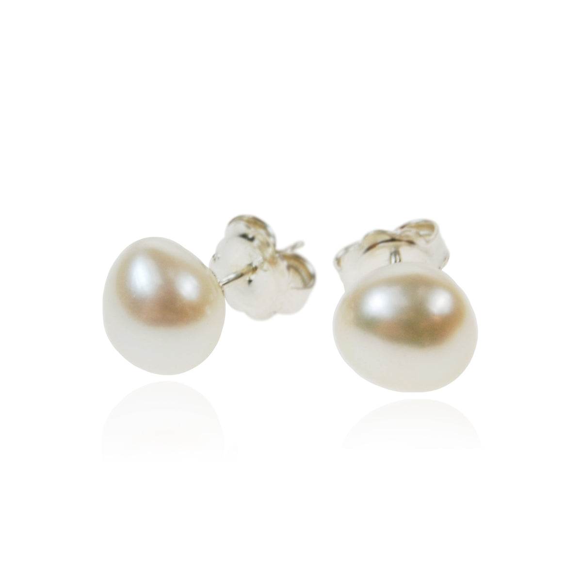 Small stud earrings crafted in sterling silver and hand-set with a creamy white Biwa pearl. Each pearl has been hand-selected for its even shape and warm, creamy lustre; beautifully reflecting the light to enhance your natural beauty. Complete this classic look with a
