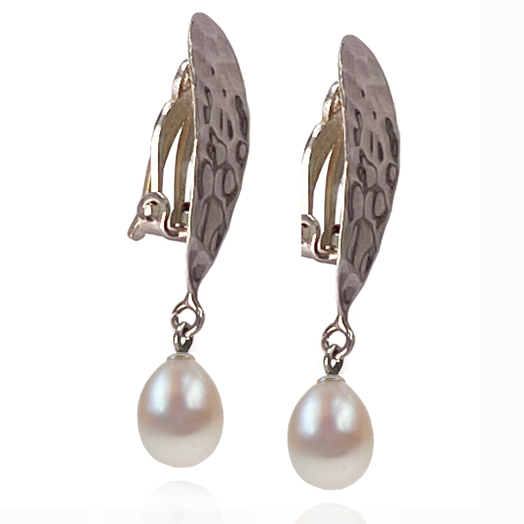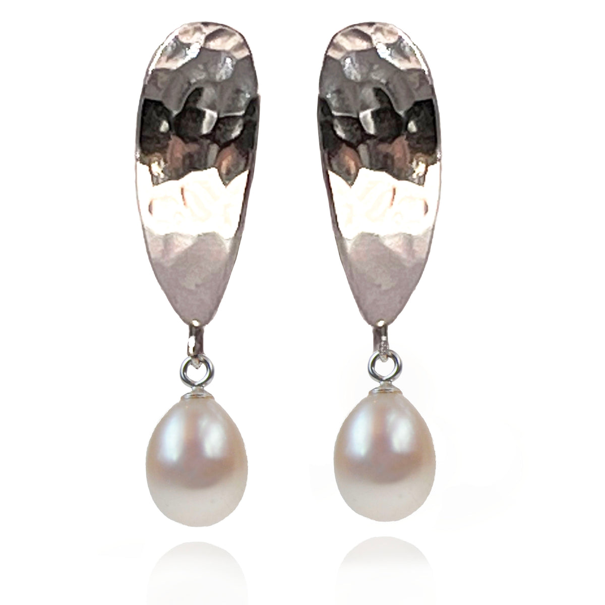 • Material: White Freshwater Pearl, Hammered Sterling Silver Earring Post